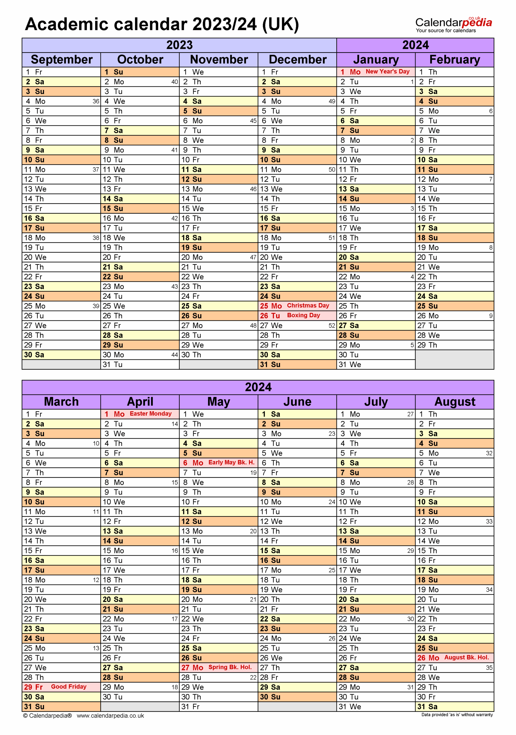 Academic Calendars 2023 24 UK Free Printable PDF Templates