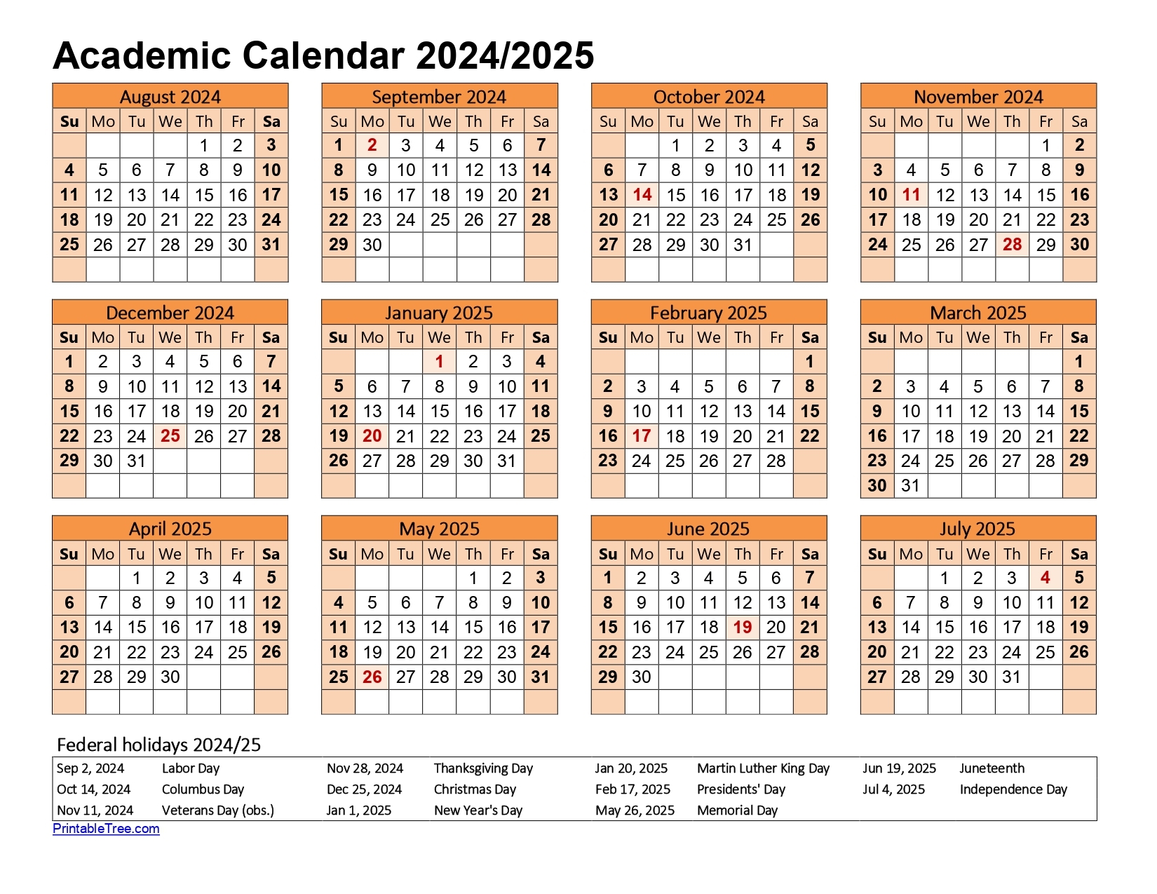 Free Printable Academic Calendar 2024 To 2025 Templates