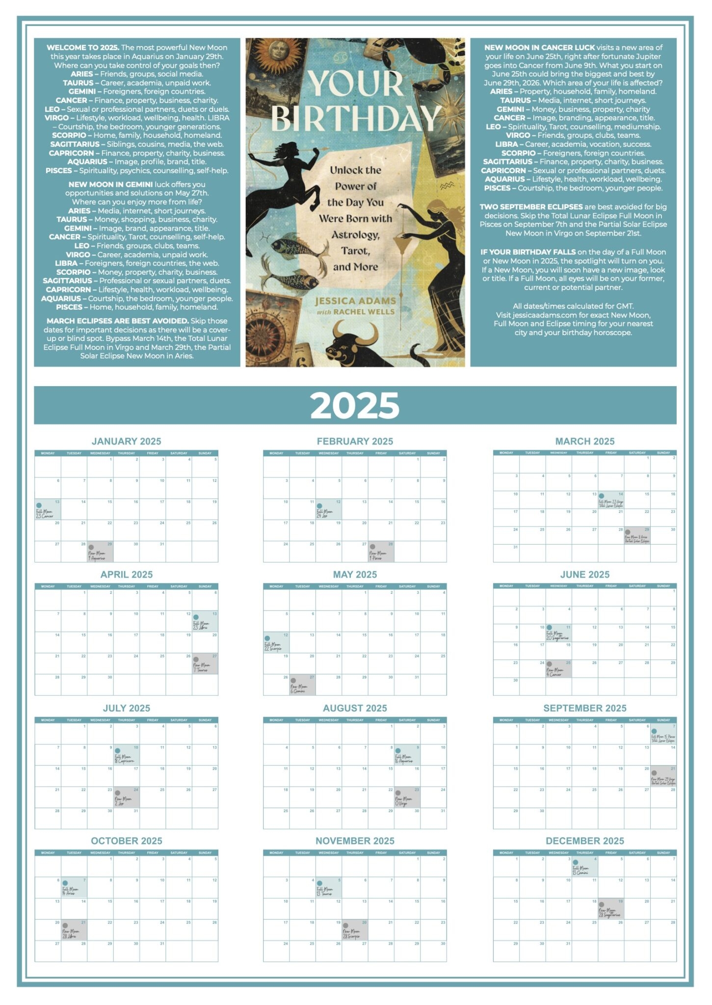 Free 2025 Astrology Moon Calendar Jessica Adams Psychic Astrologer