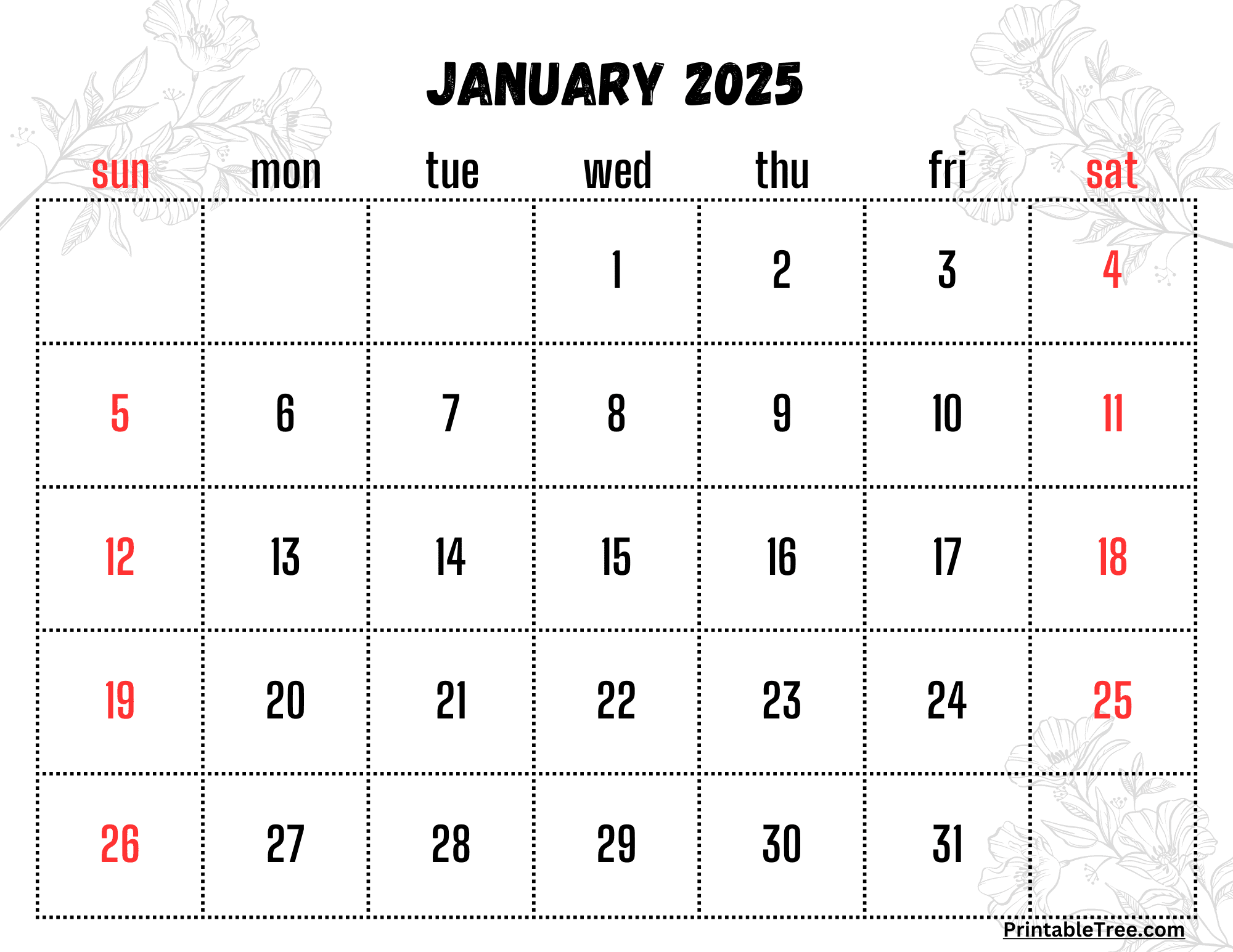 January 2025 Calendar Printable PDF Template With Holidays