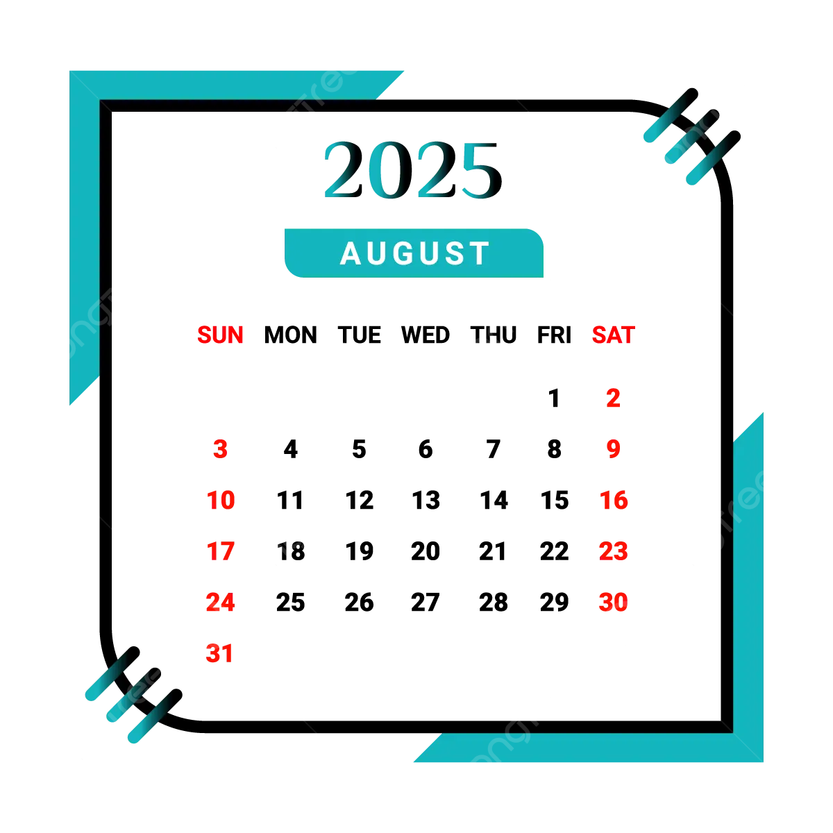 August 2025 Calendar PNG Transparent Images Free Download Vector Files Pngtree