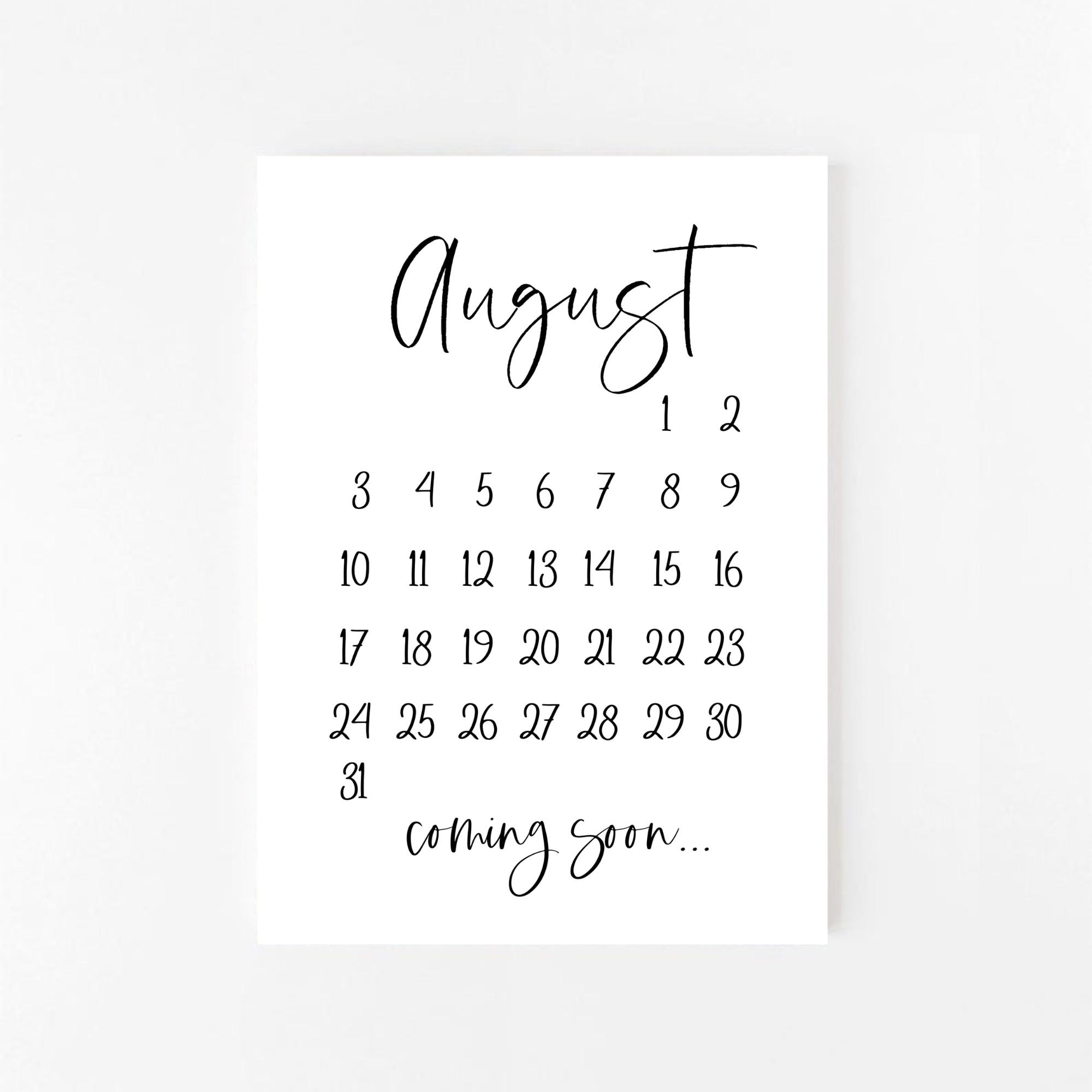 August 2025 Pregnancy Announcement Printable August Calendar