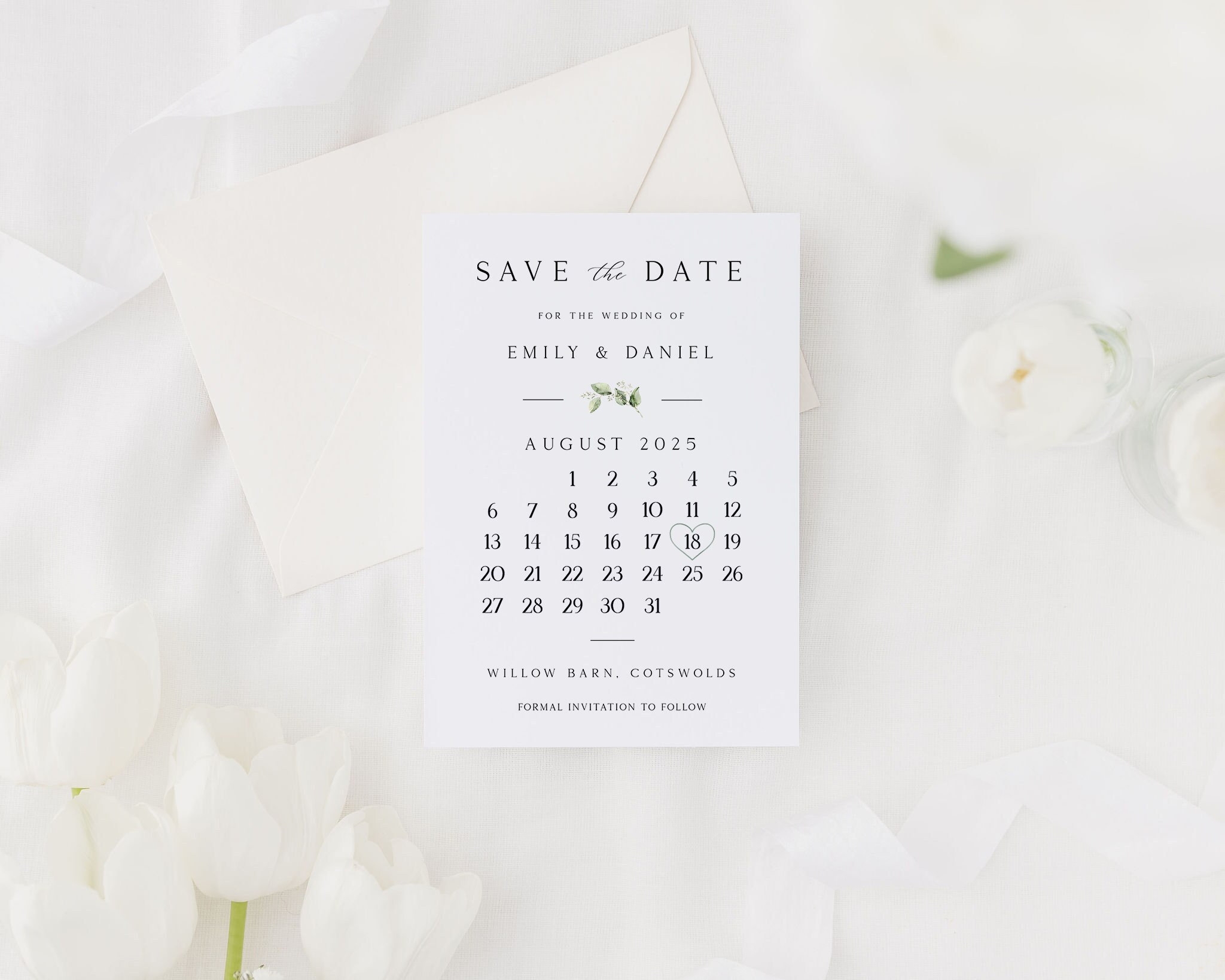Save The Date Cards Minimal Save The Dates With Envelopes Modern Calendar Eucalyptus Save The Dates