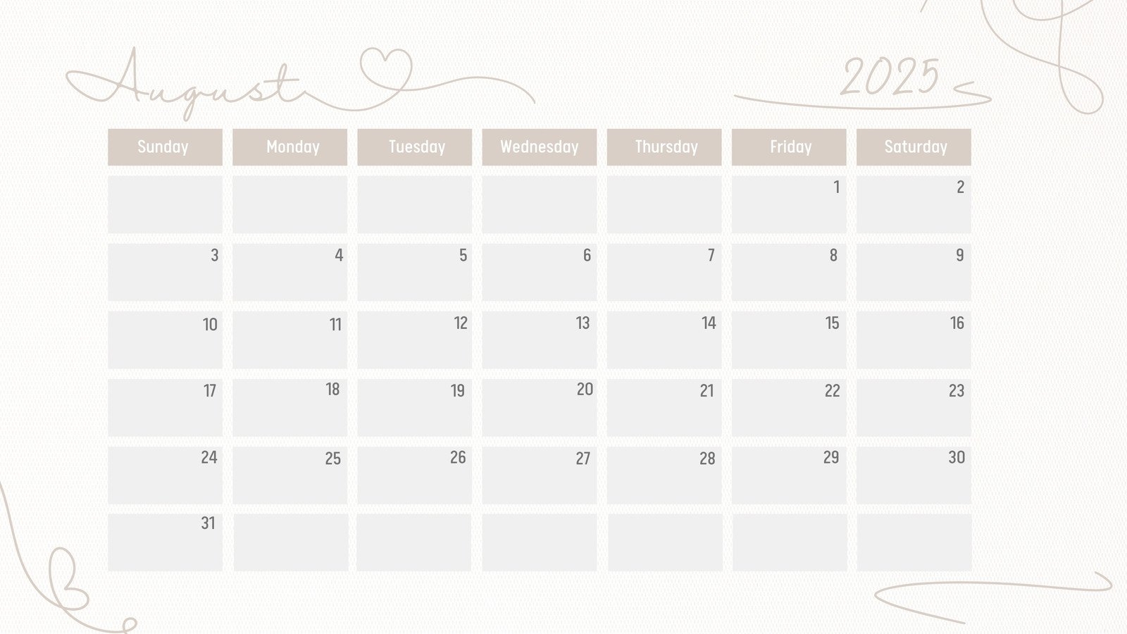 Stay organized and efficient with a vertical calendar that offers ample space for notes and reminders. With its sleek design and practical layout, you’ll find yourself effortlessly managing your time and tasks throughout the month of August 2025.