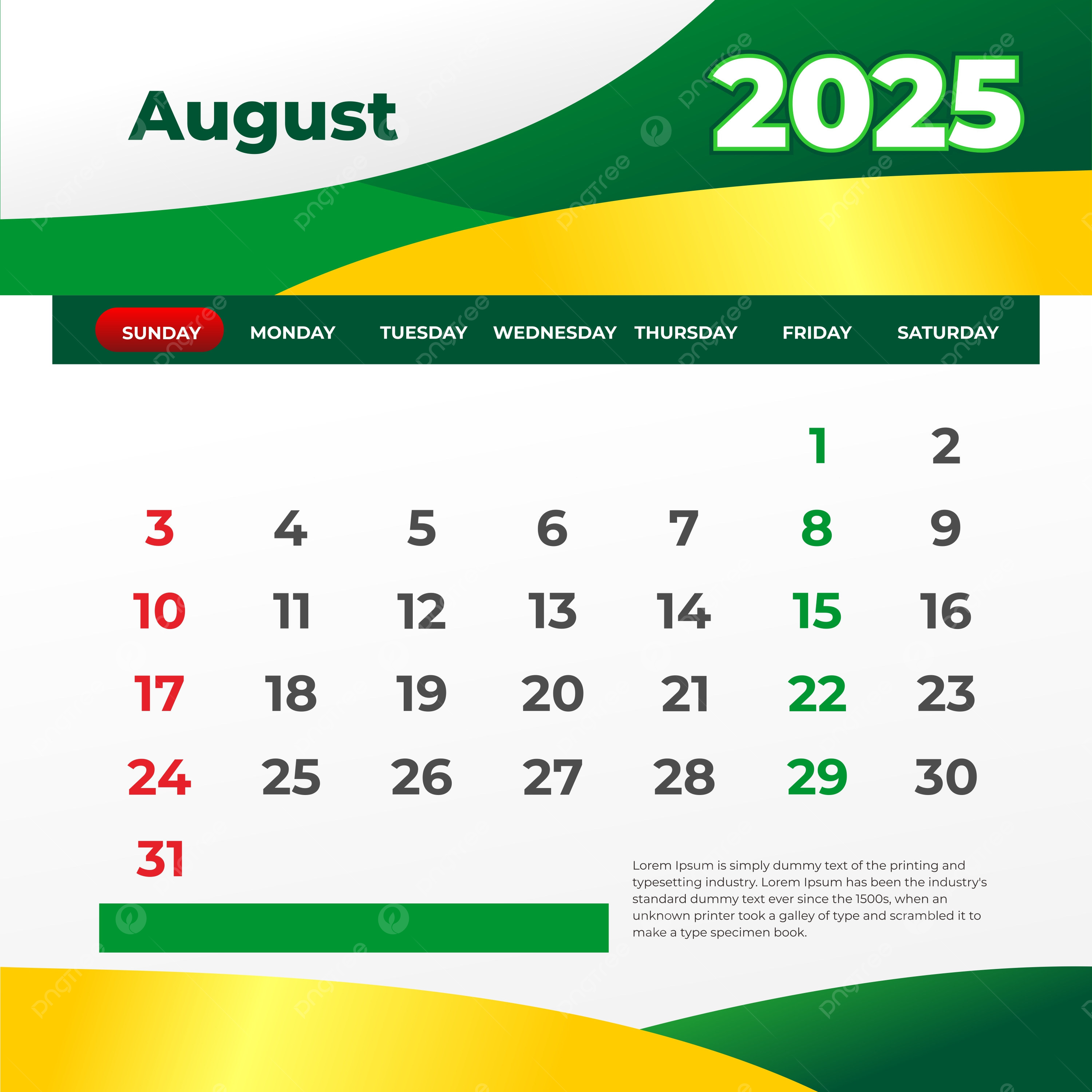 Green Calendar August 2025 Vector Template Download On Pngtree