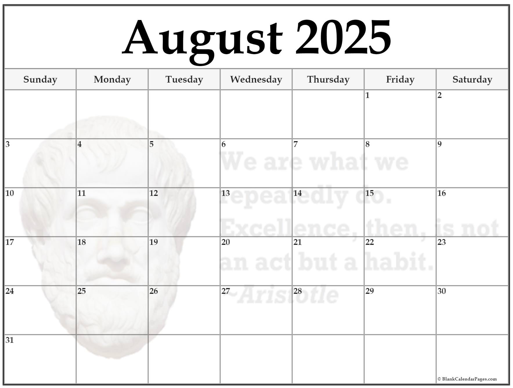 Free Printable August 2025 Calendar Templates Canva