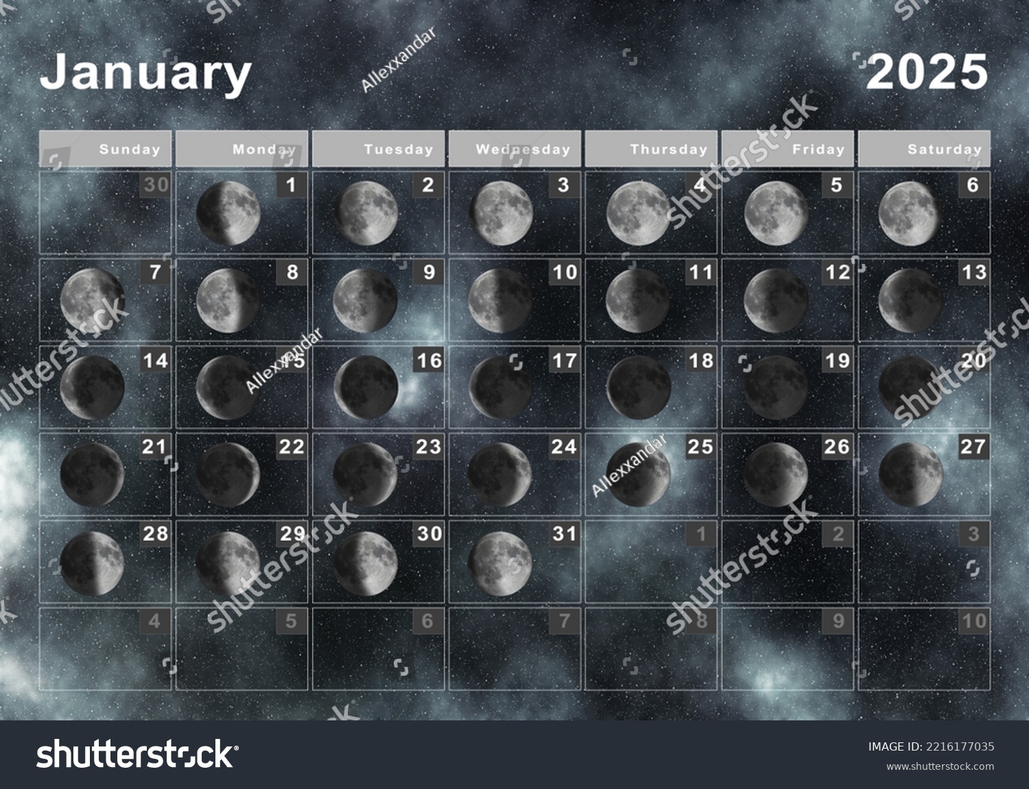 Ilustrasi Stok December 2025 Lunar Calendar Moon Cycles 2213849469 Shutterstock