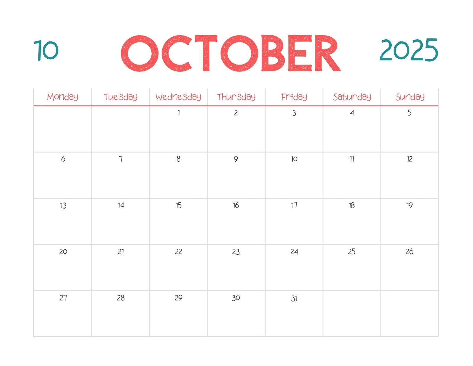 Printable October 2025 Calendar