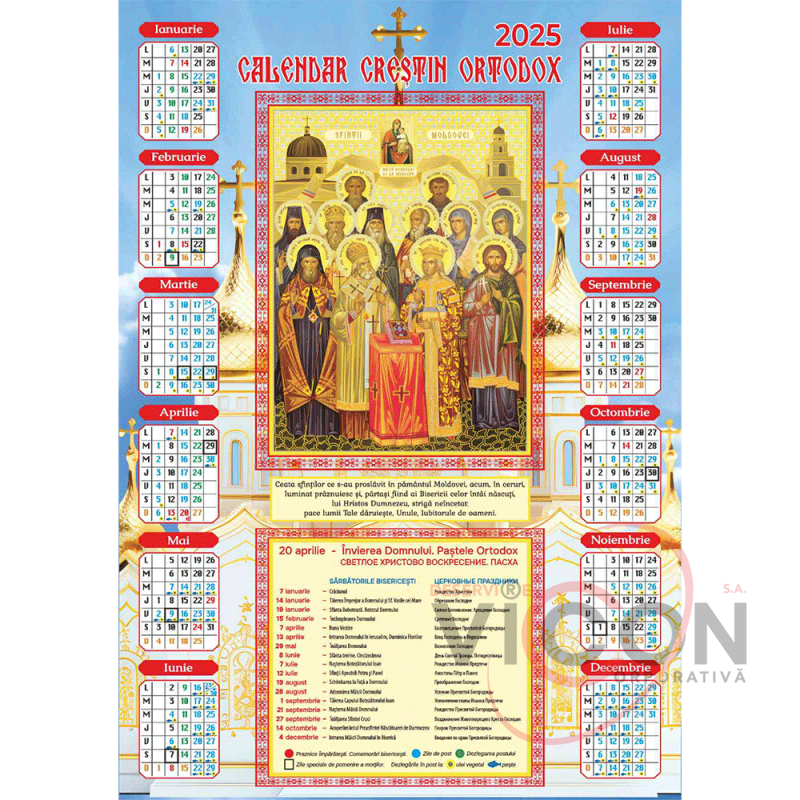 Calendar Ortodox 2025 Format A3 De Perete Rosu