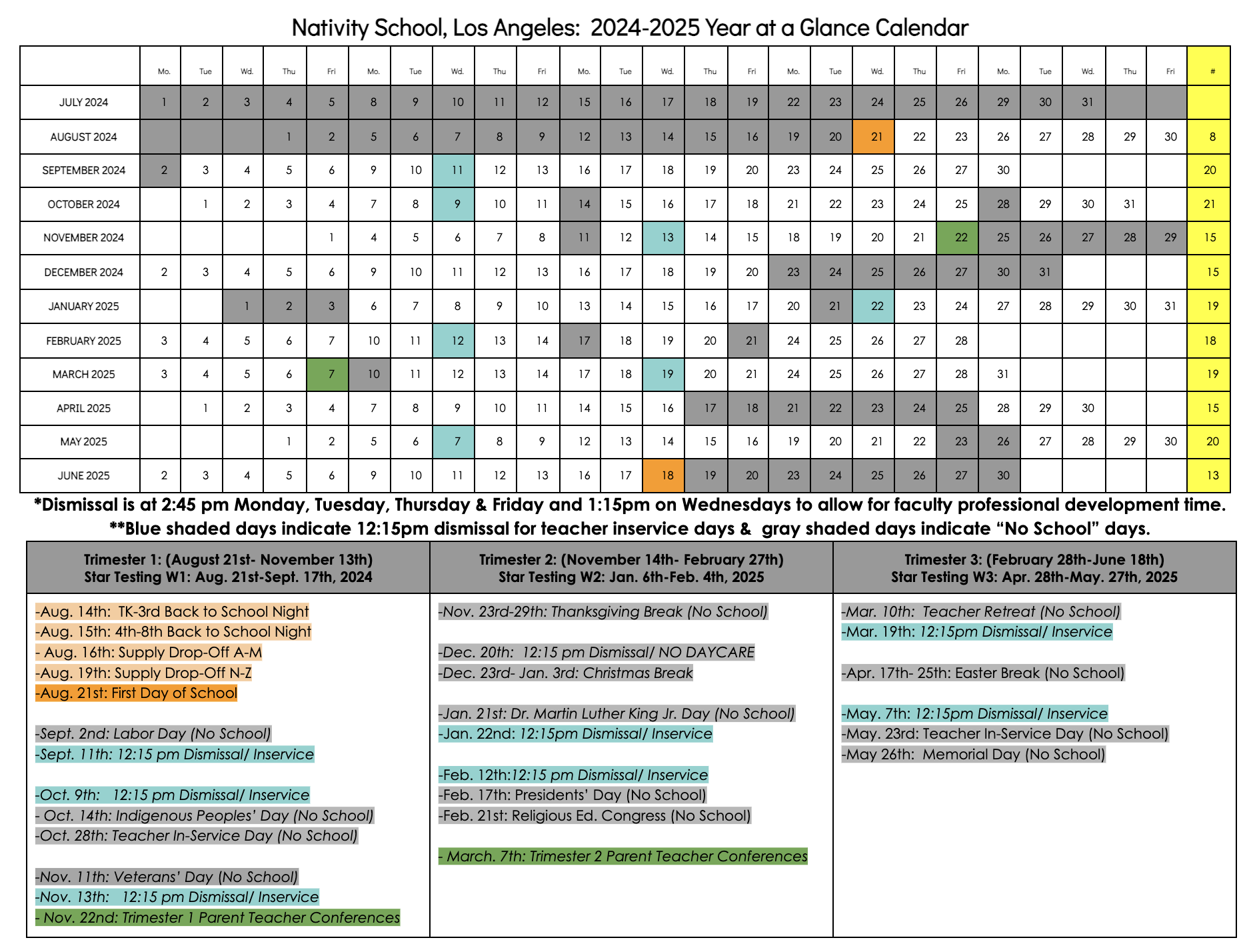2024 2025 Year At Glance Nativity Catholic School