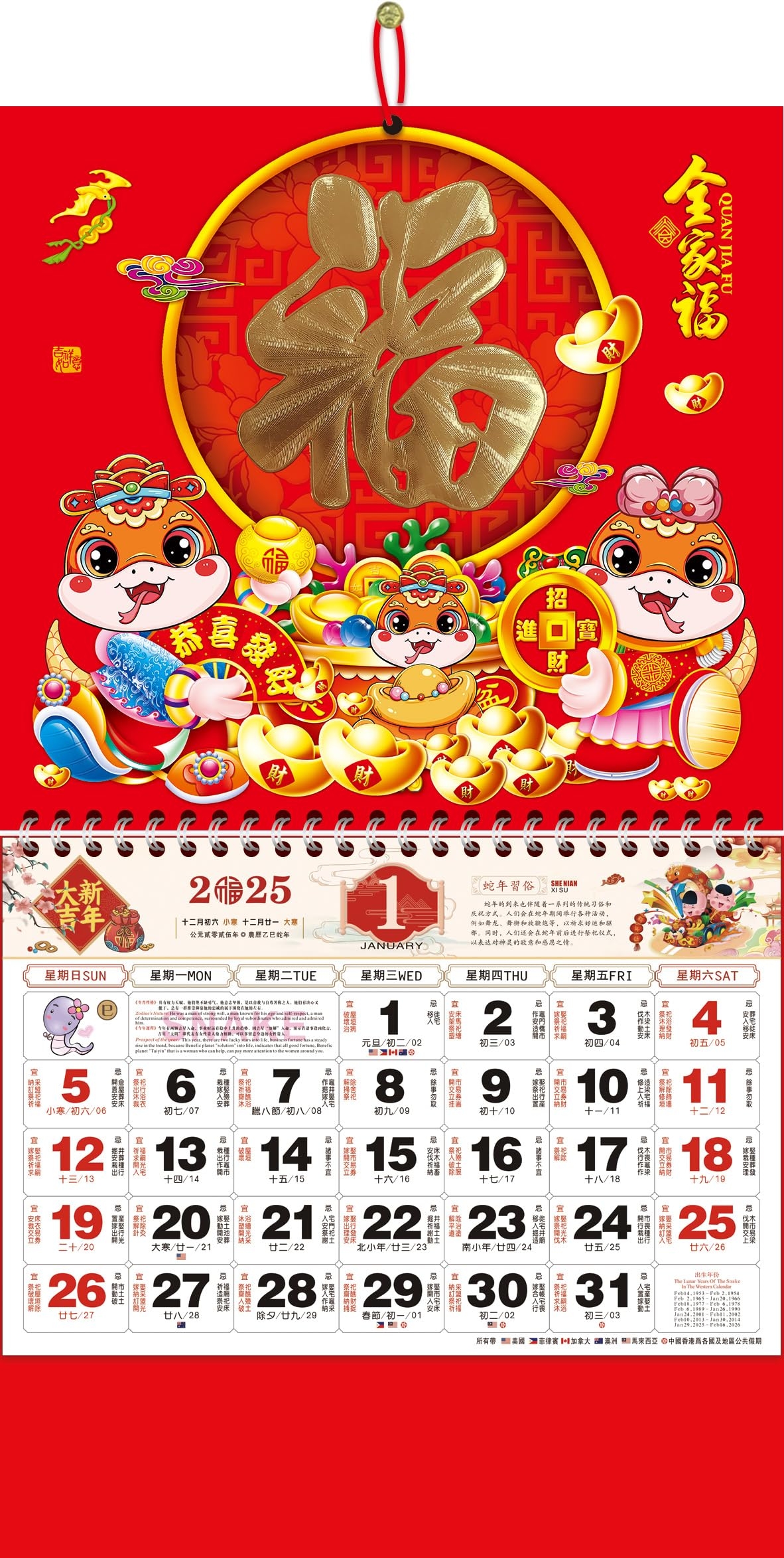 SEWACC 2025 Chinese Wall Calendar Monthly 2025 Year Of The Snake Lunar Calendars Chinese Zodiac Snake Hanging Calendar A Amazon sg Office