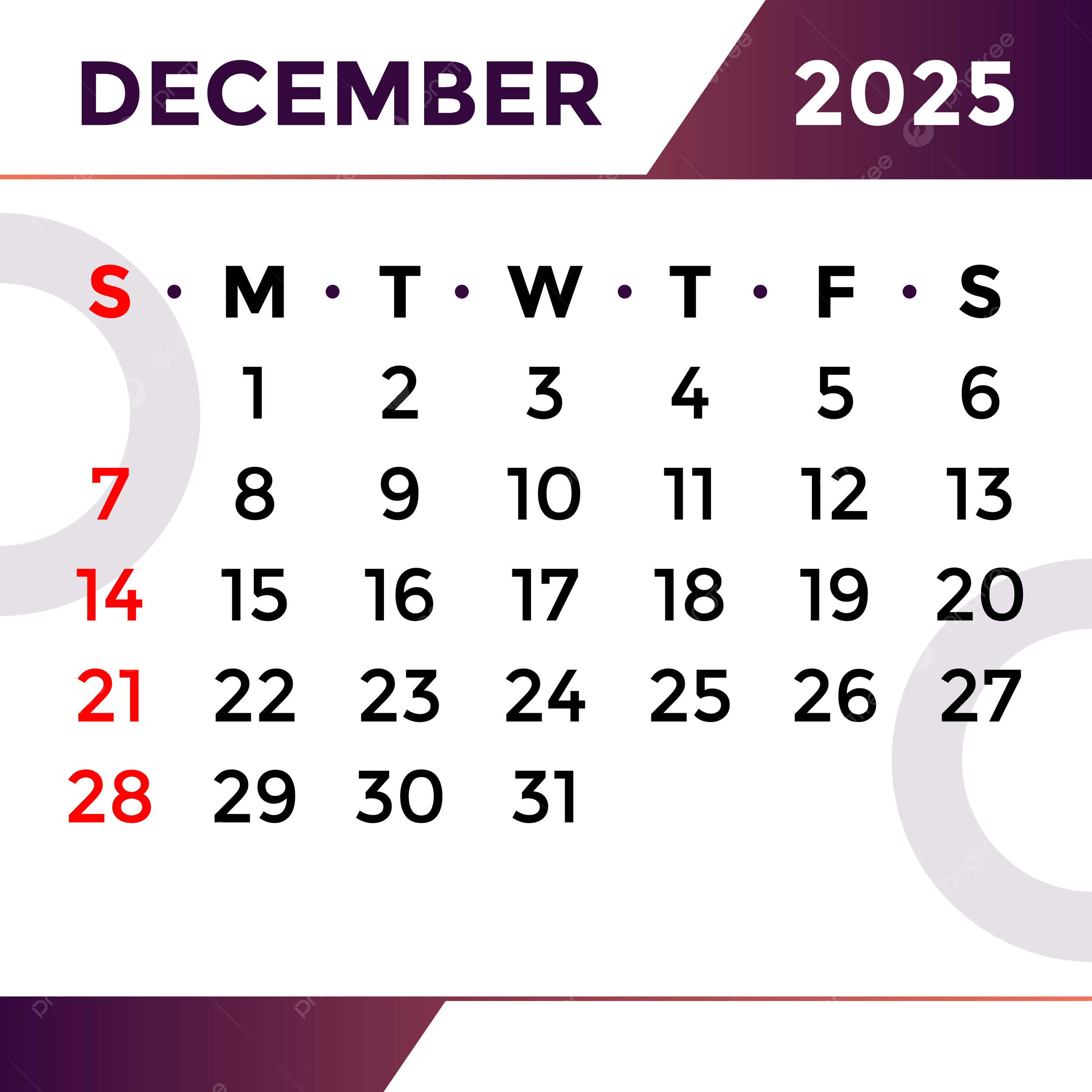 December Month Calendar 2025 Vector Template Download On Pngtree
