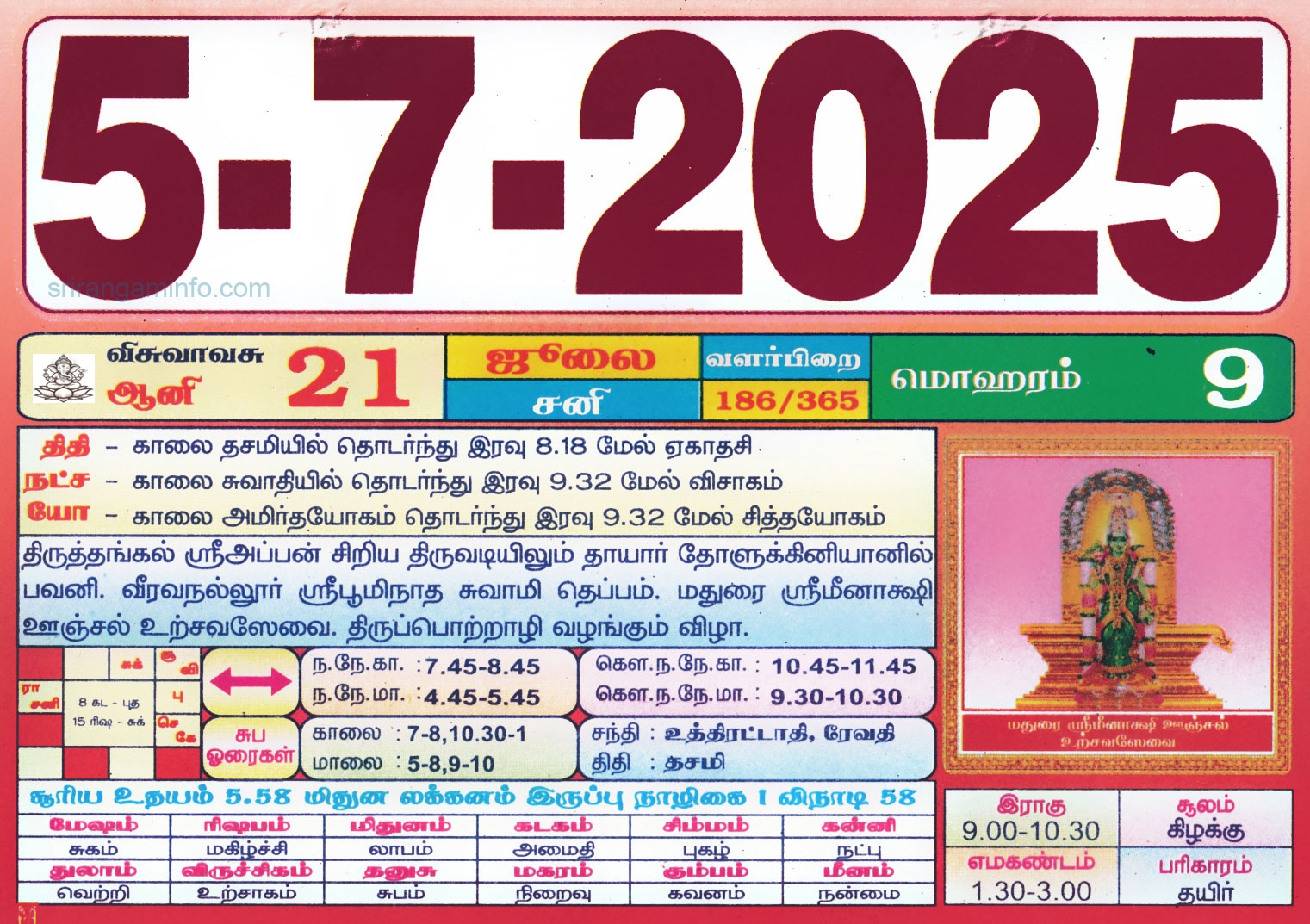 Tamil Calendar July 2025 2025