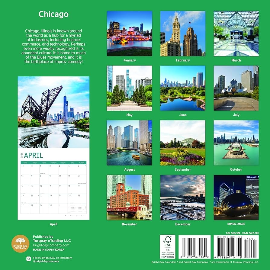 2025 Chicago Monthly Wall Calendar By Bright Day 12 X 12 Inch The Windy City Amazon co uk Everything Else