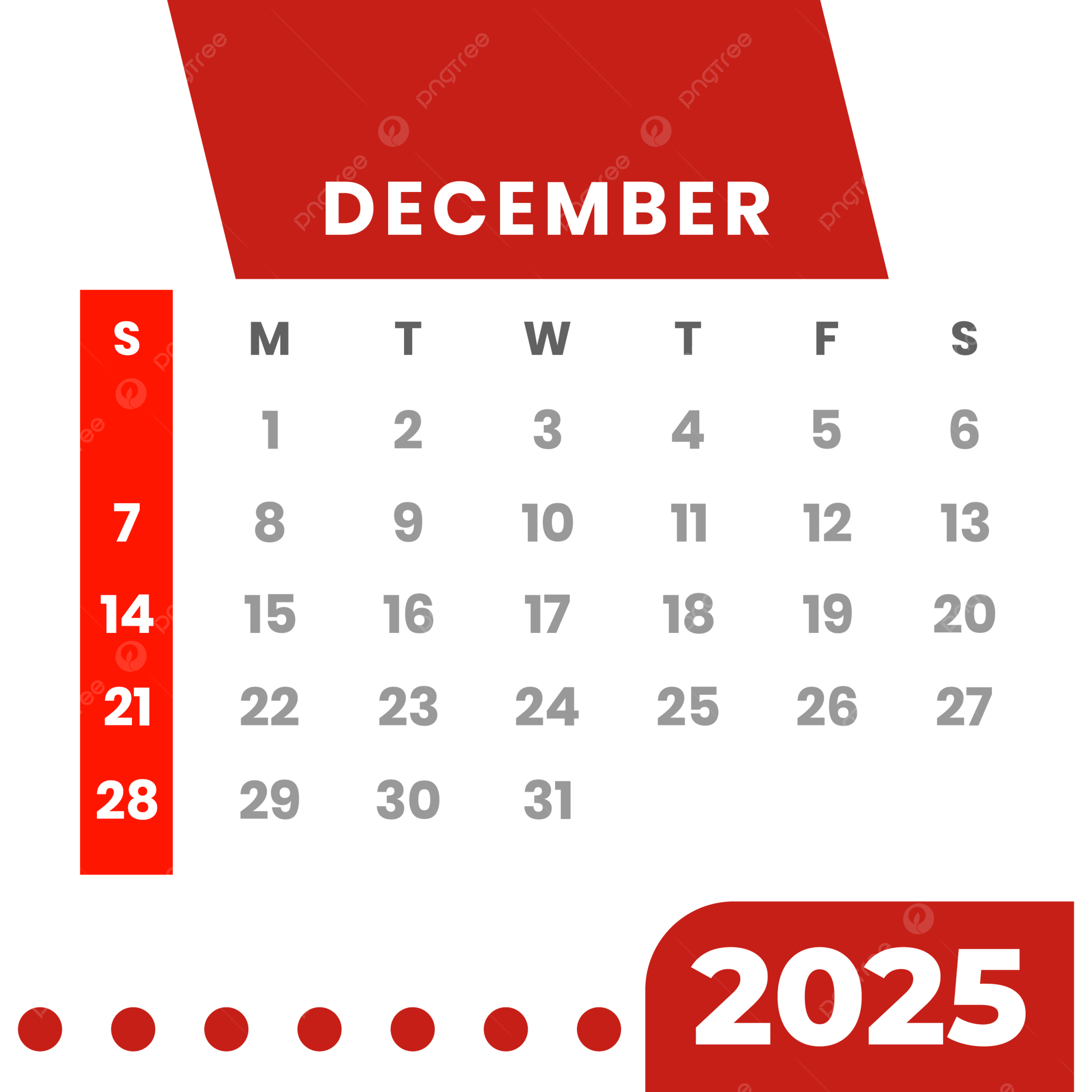 Monthly Calendar December 2025 Clipart Red Vector Monthly