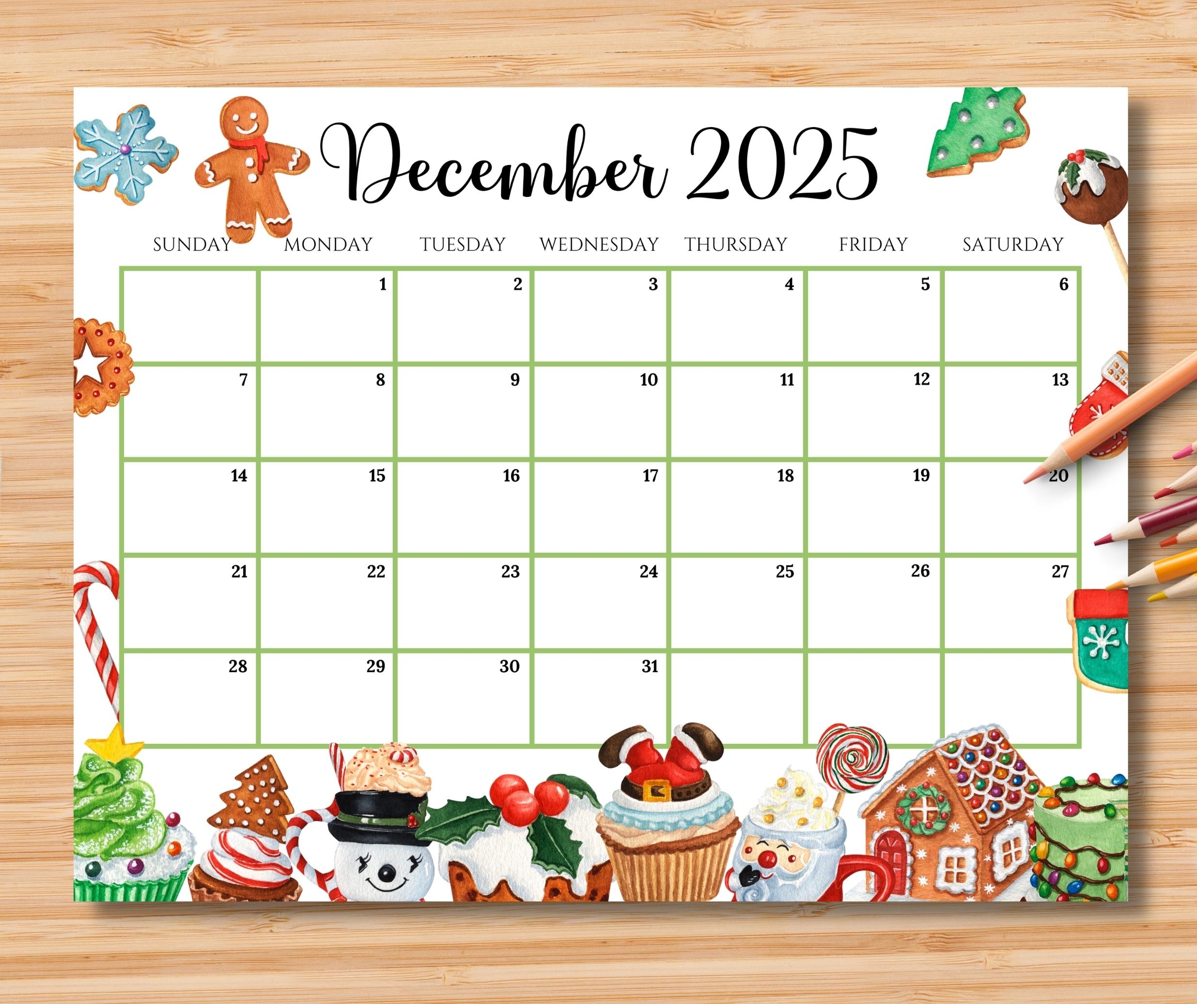 EDITABLE December 2025 Calendar Christmas Sweets U0026 Drinks mon