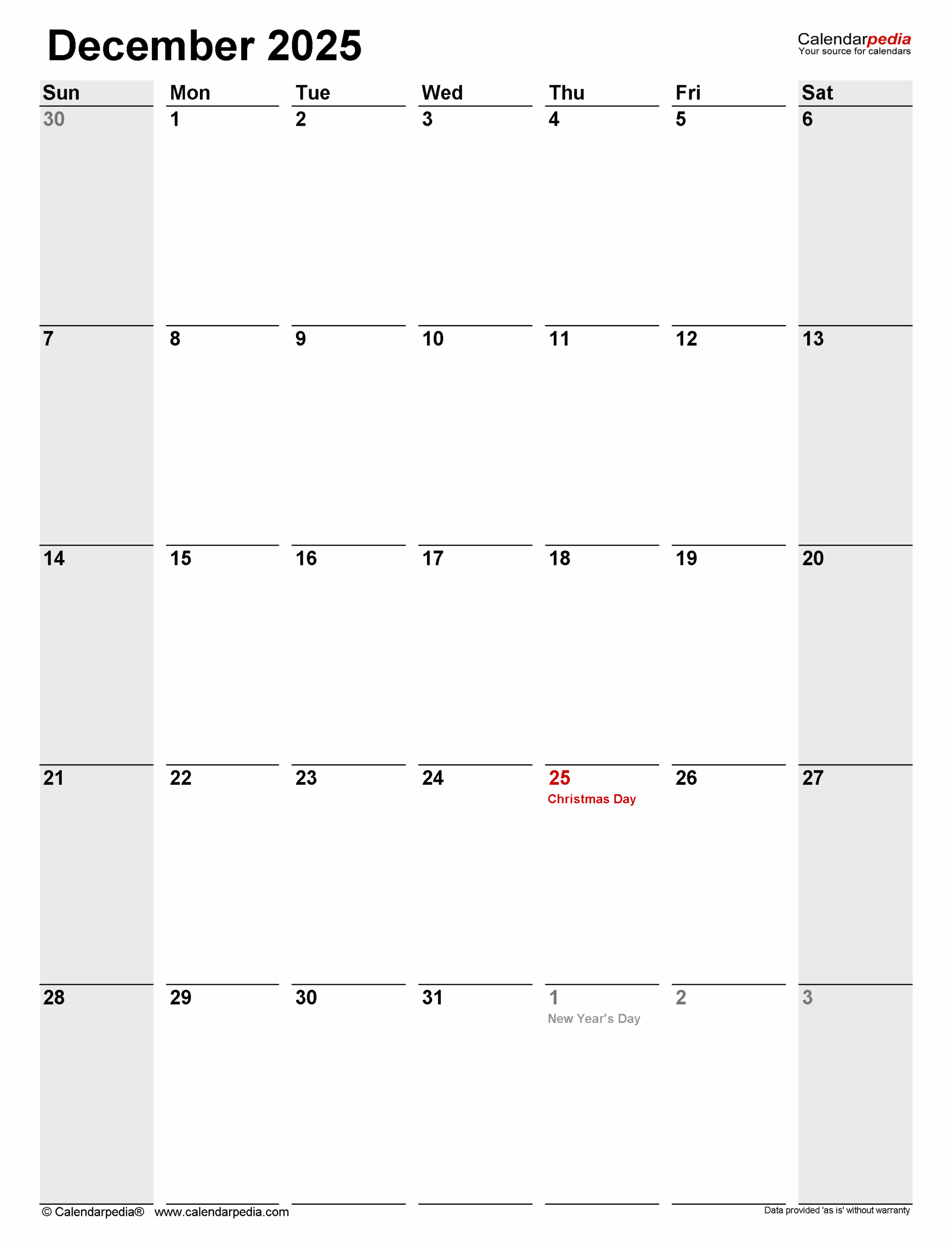 December 2025 Calendar Templates For PDF Excel And Word
