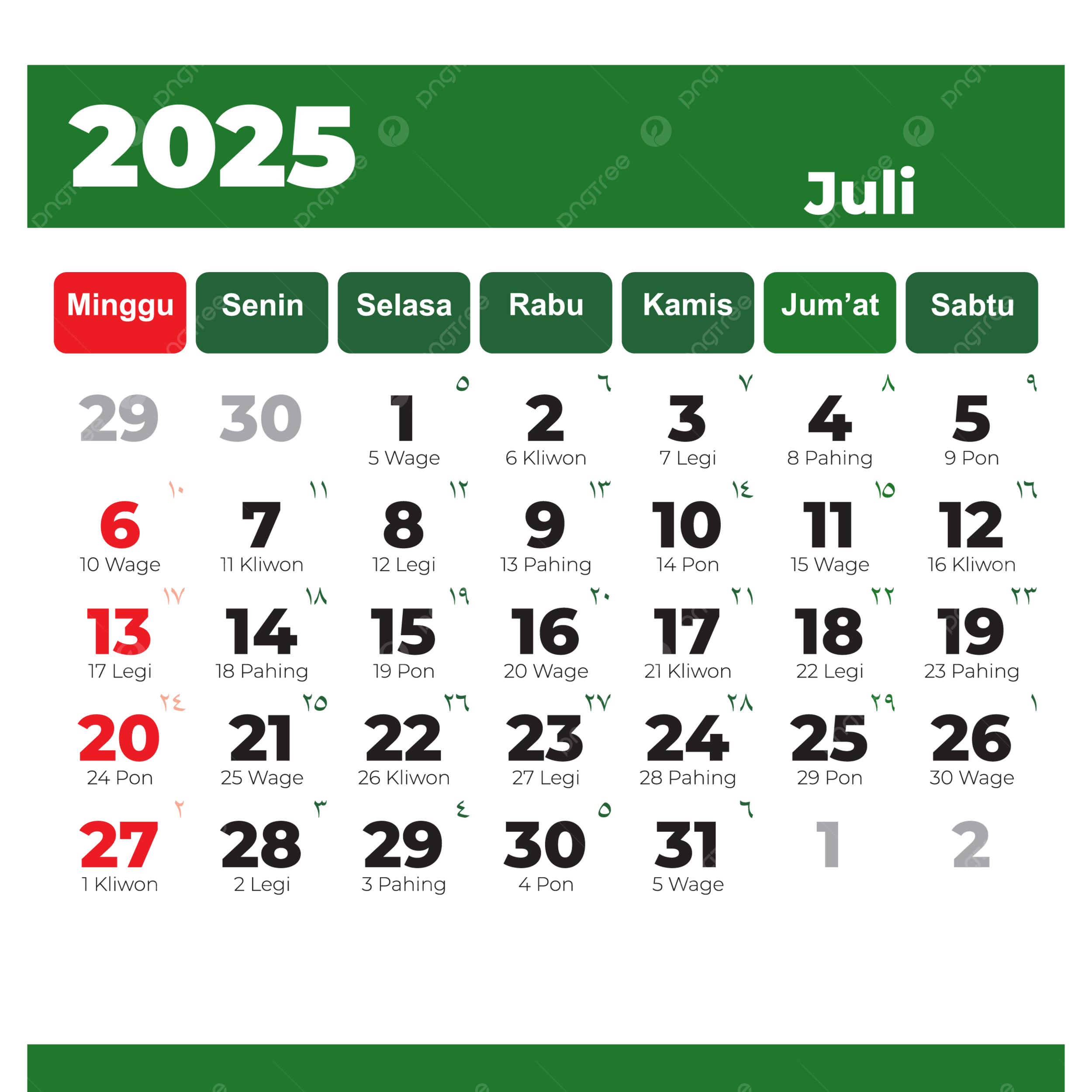July 2025 Calendar Complete Vector Hijri And Gregorian Calendar Light Green National Holidays 2025 Calendar PNG And Vector With Transparent Background For Free Download