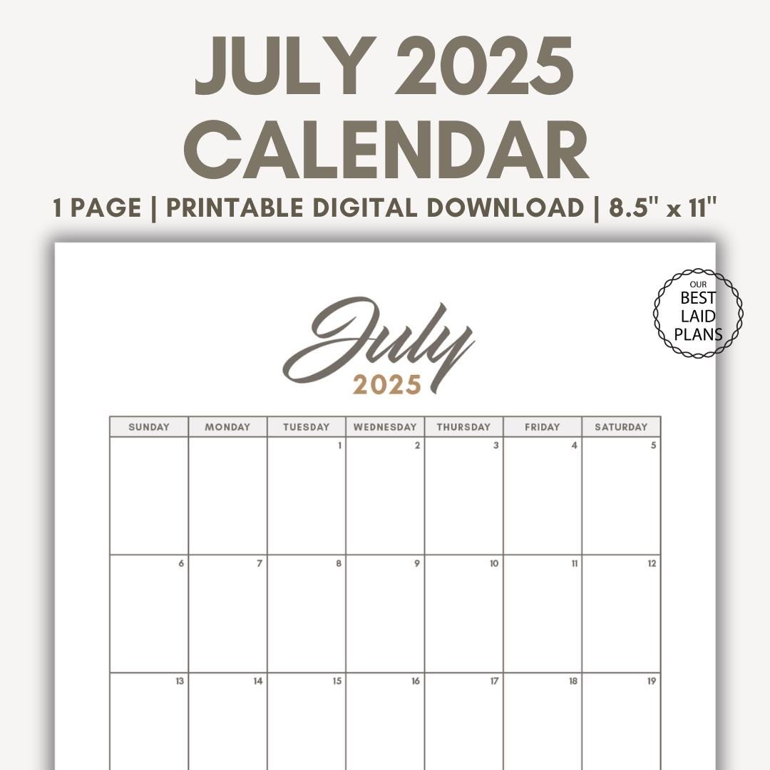 EDITABLE July 2025 Calendar 2025 July Planner Monthly Schedule