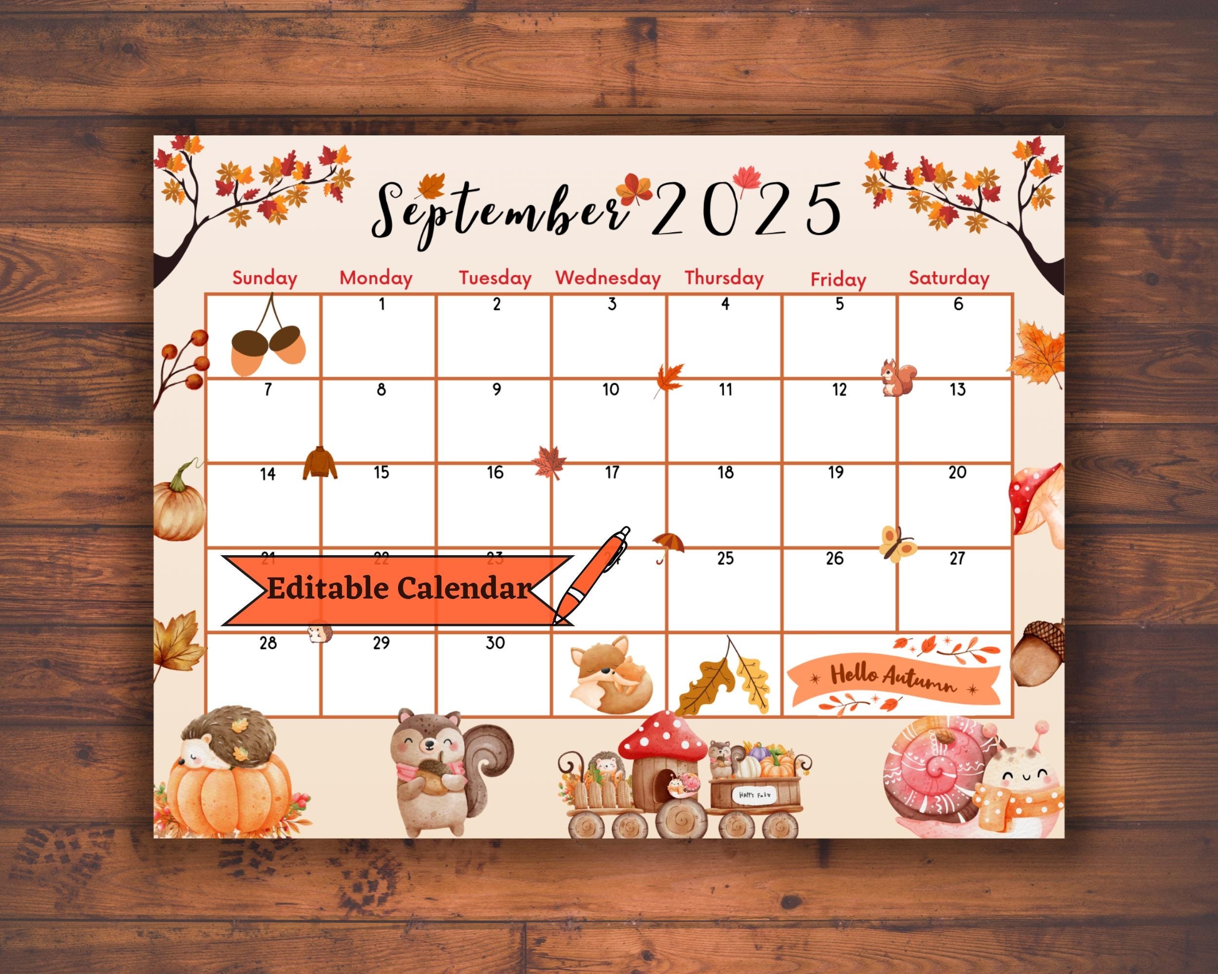 Editable Fillable September 2025 Calendar For Autumn Fall Back