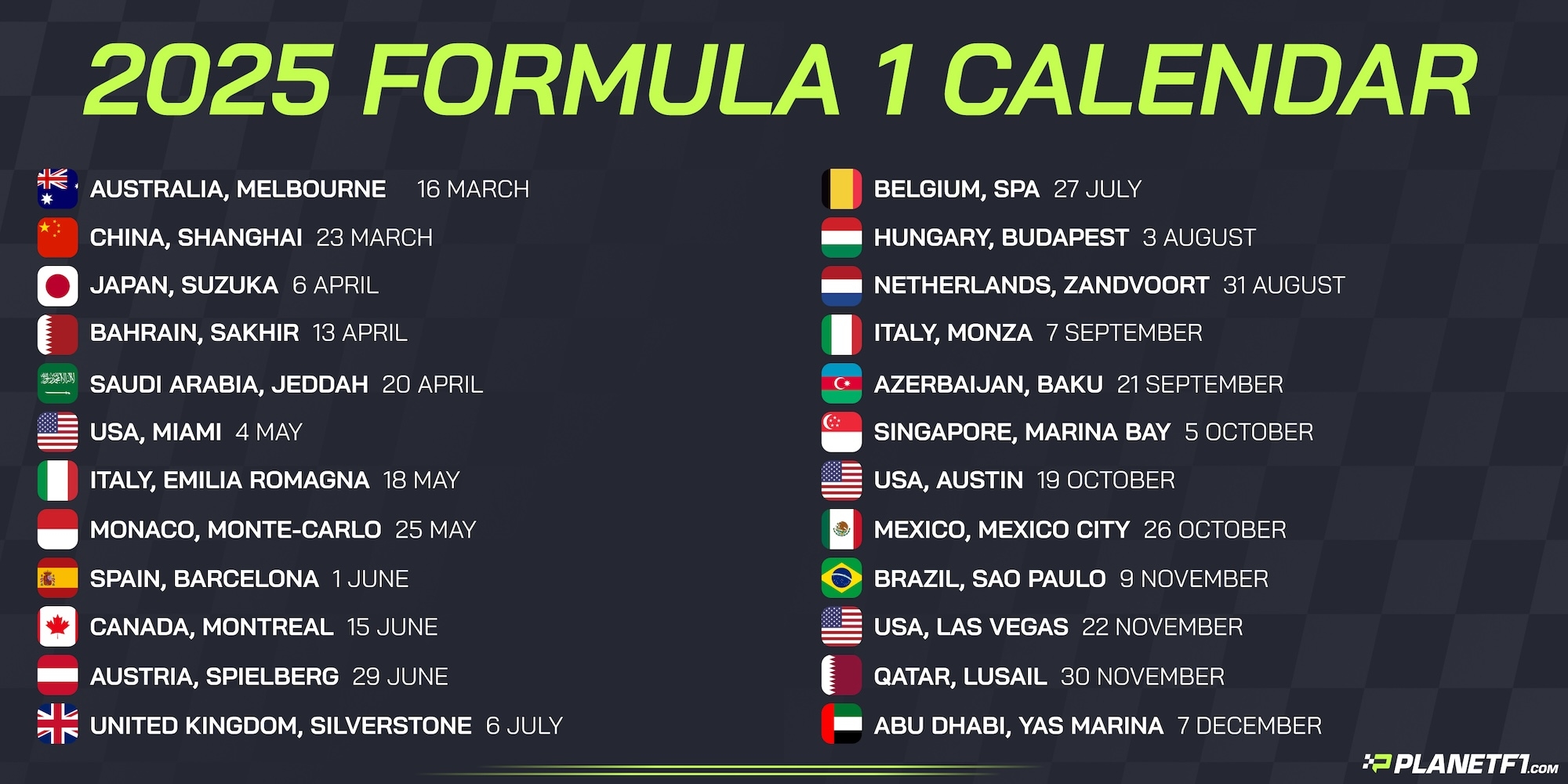 Formula 1 News 24 race 2025 F1 Calendar Released