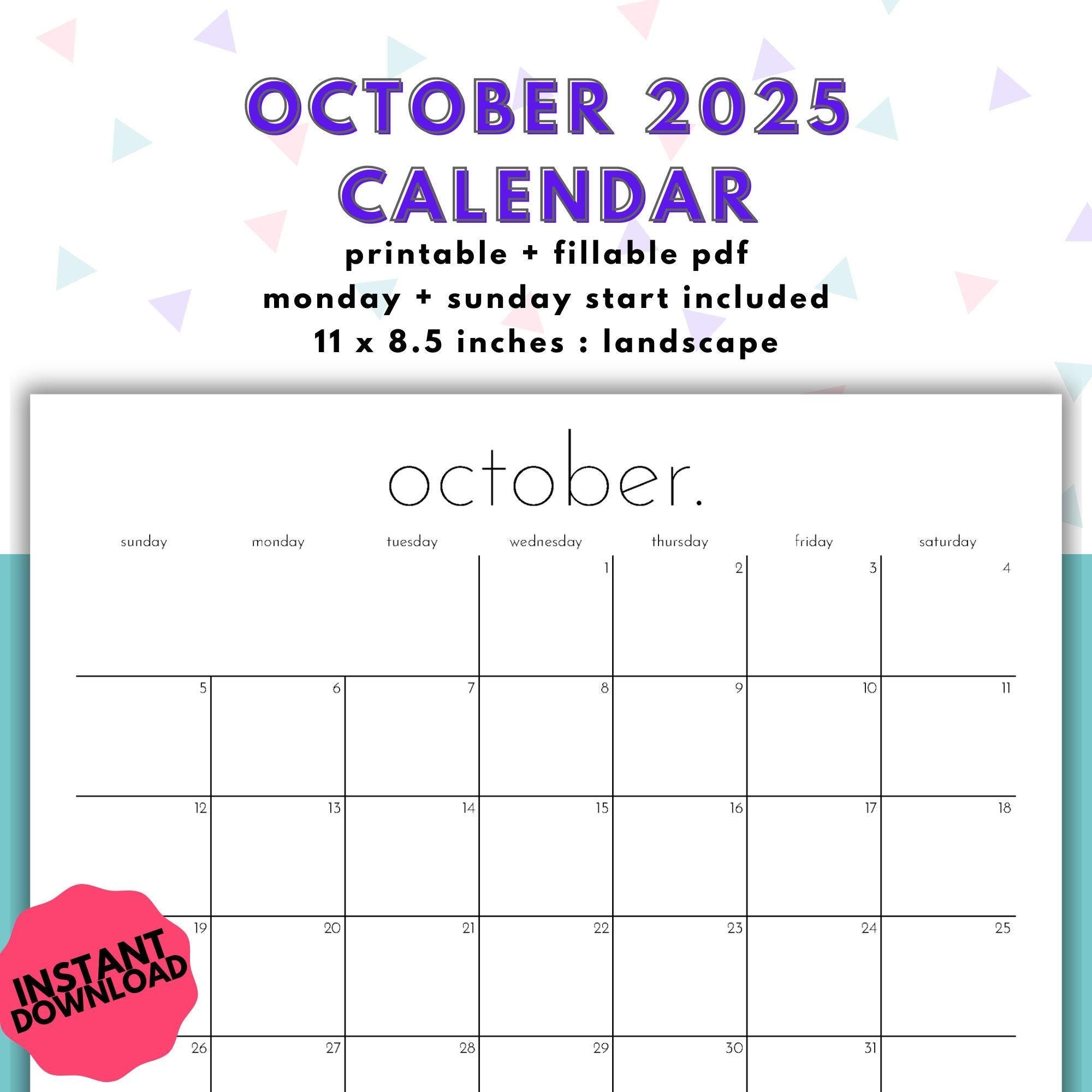 October 2025 Printable Digital Fillable Calendar With Sunday