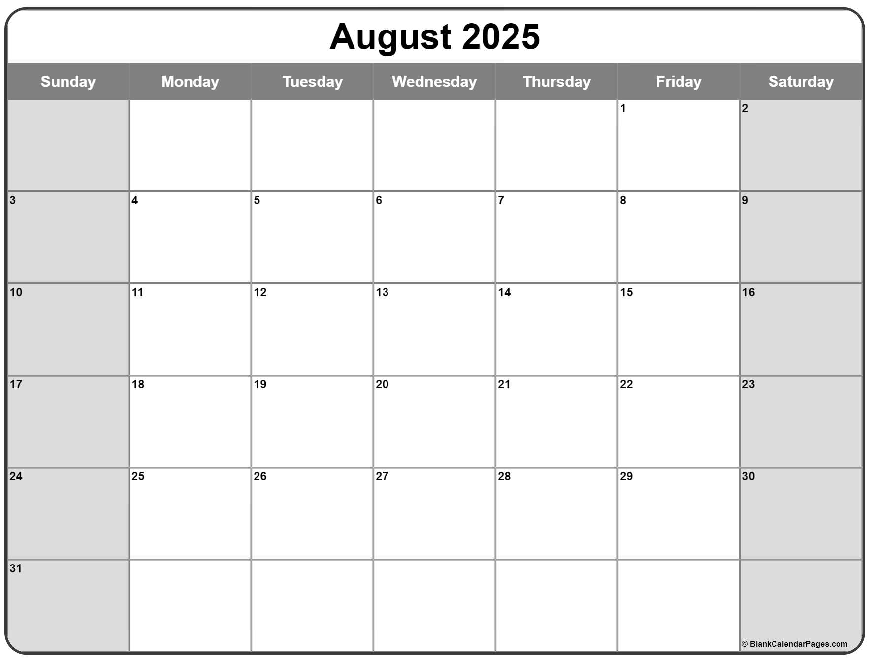 Printable August 2025 Calendar