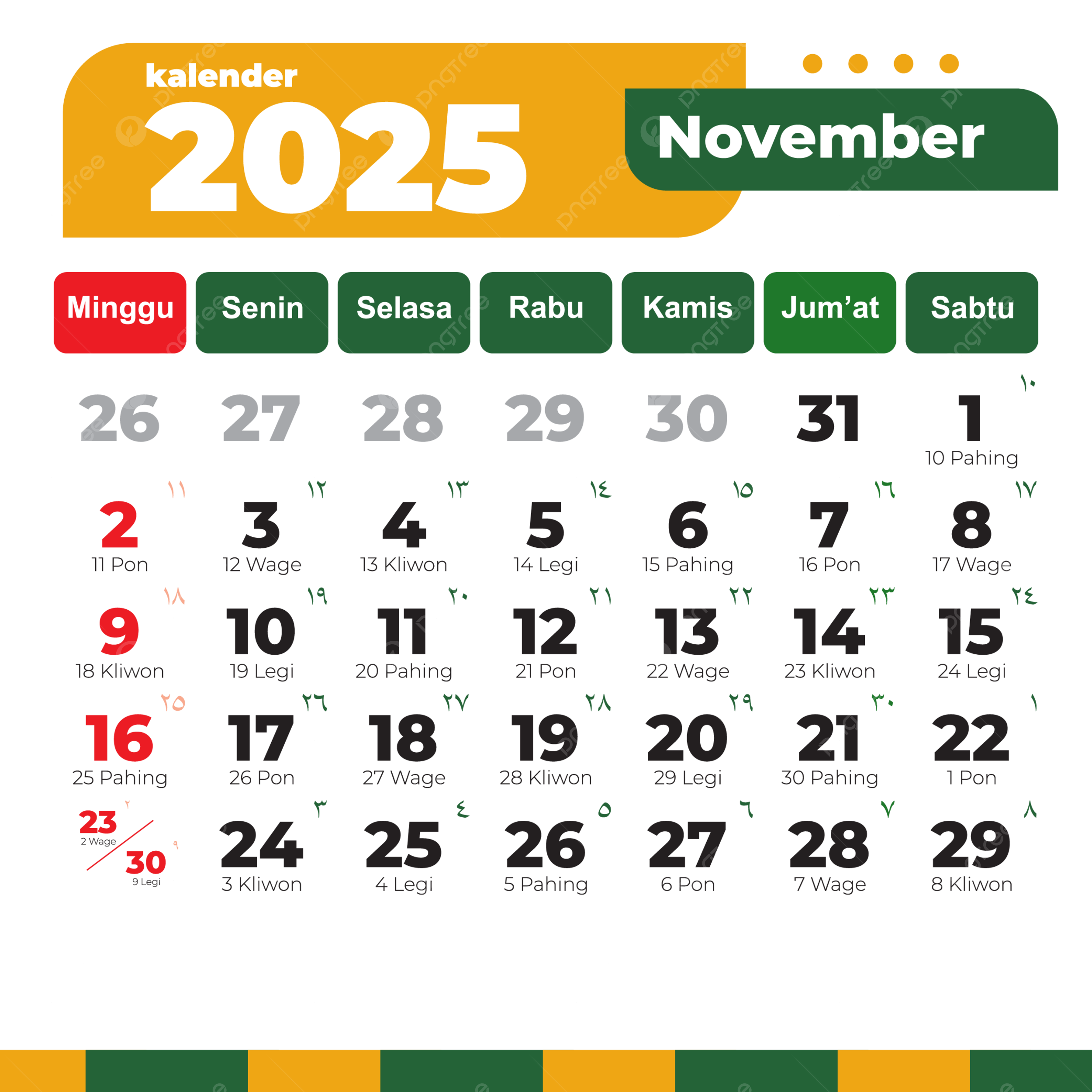 Green Calendar November 2025 Vector Template Download On Pngtree
