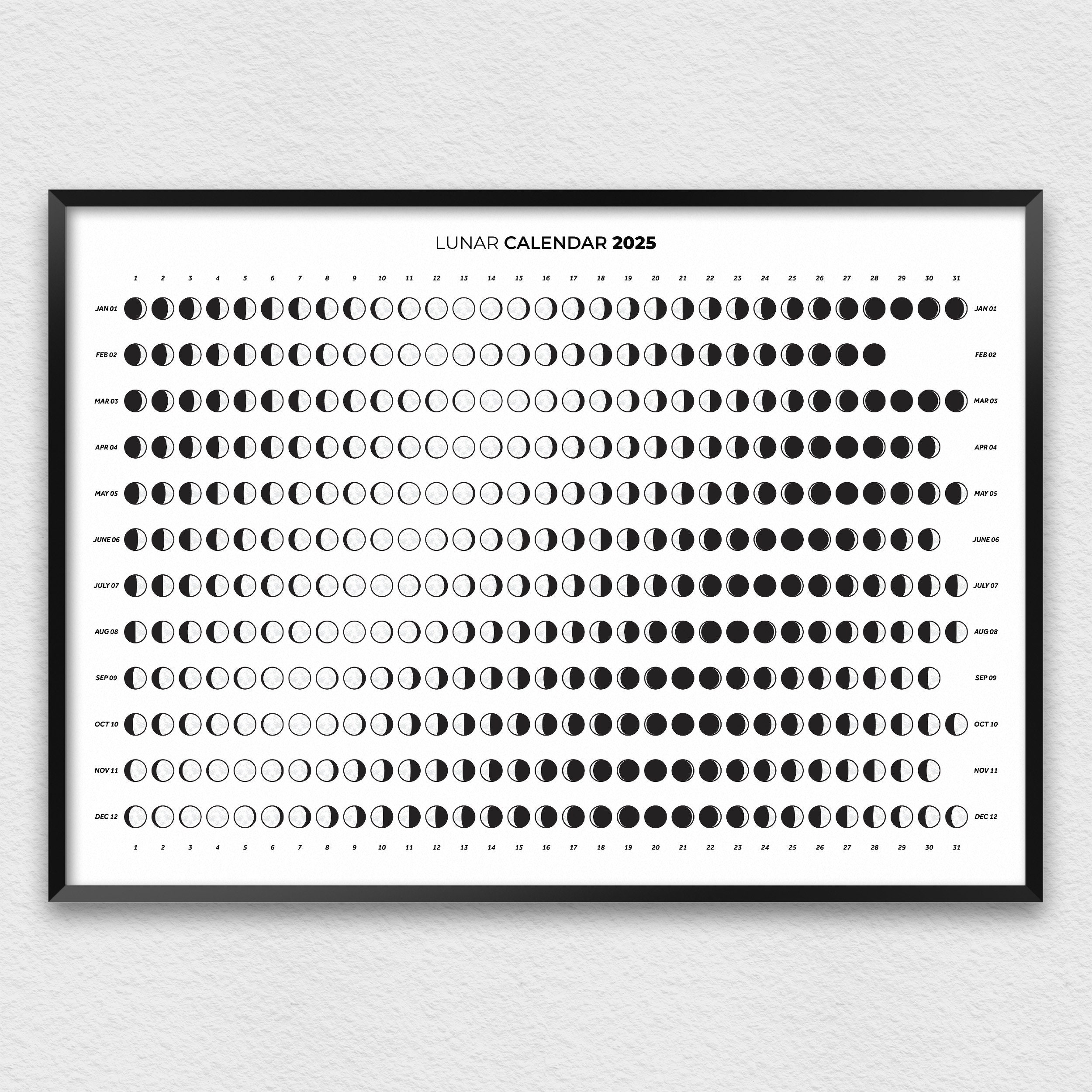 2025 Moon Calendar In Horizontal Orientation 2025 Moon Phases