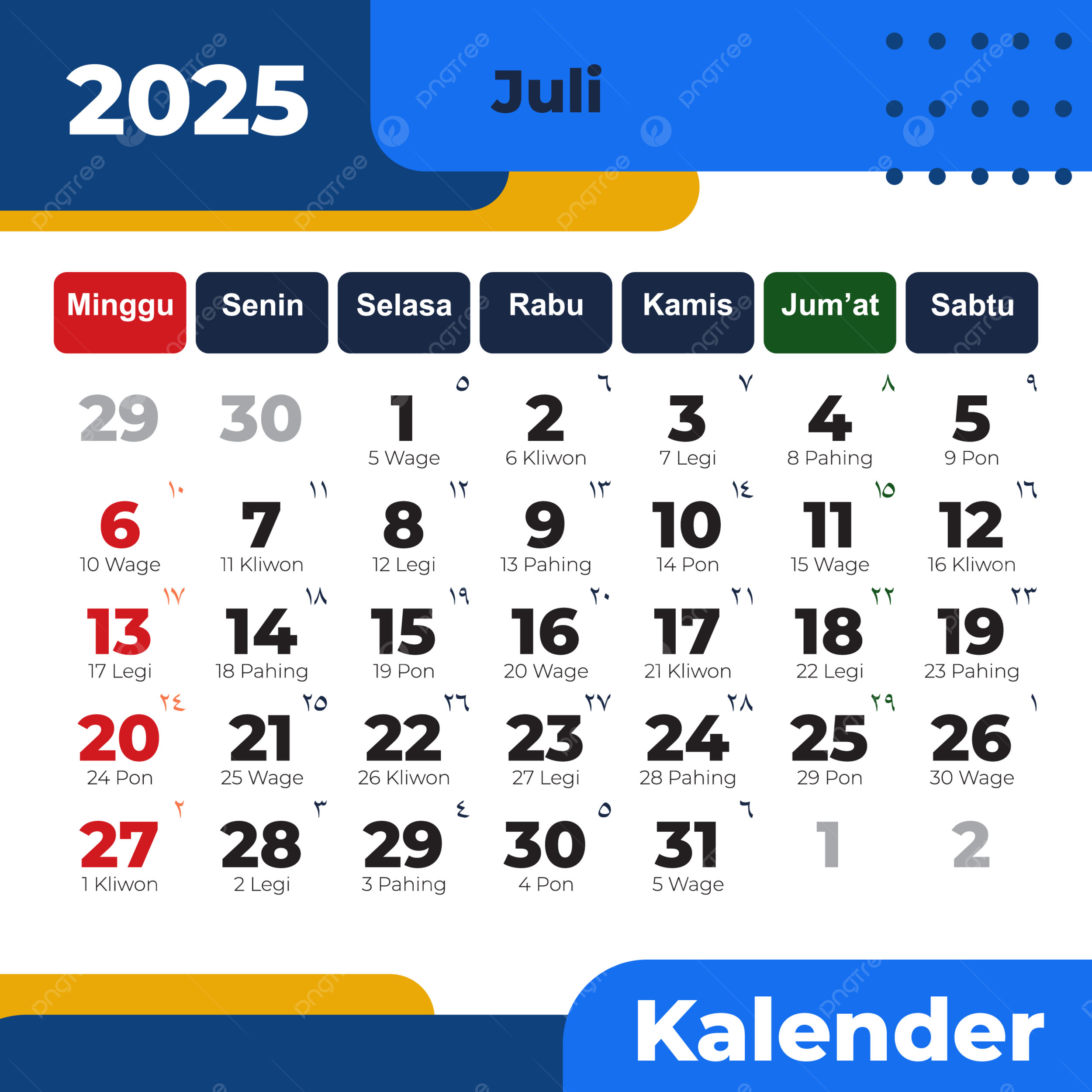 Indonesian Monthly Calendar 2025 July Complete Vector July Calendar 2025 Calendar July PNG And Vector With Transparent Background For Free Download