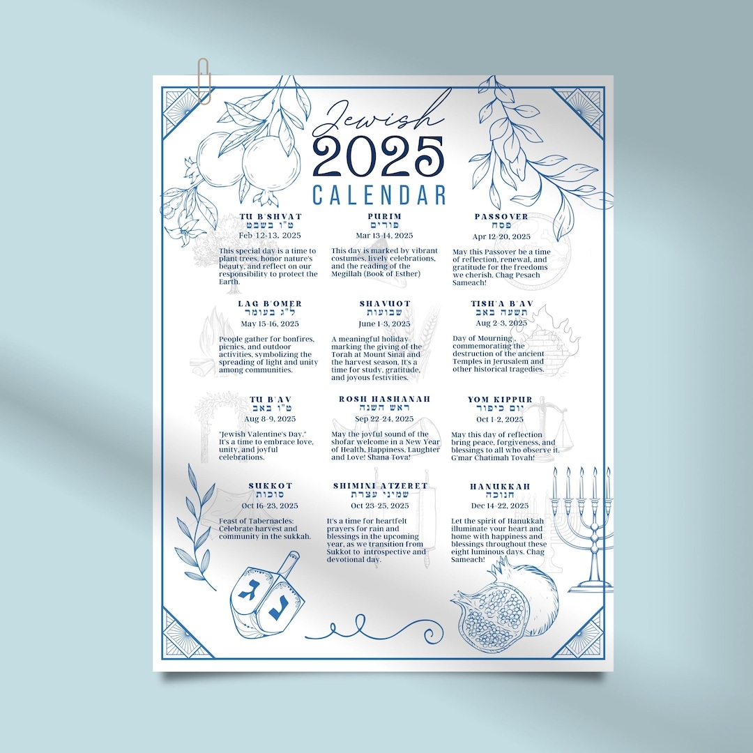 2025 Jewish Holiday Calendar Etsy