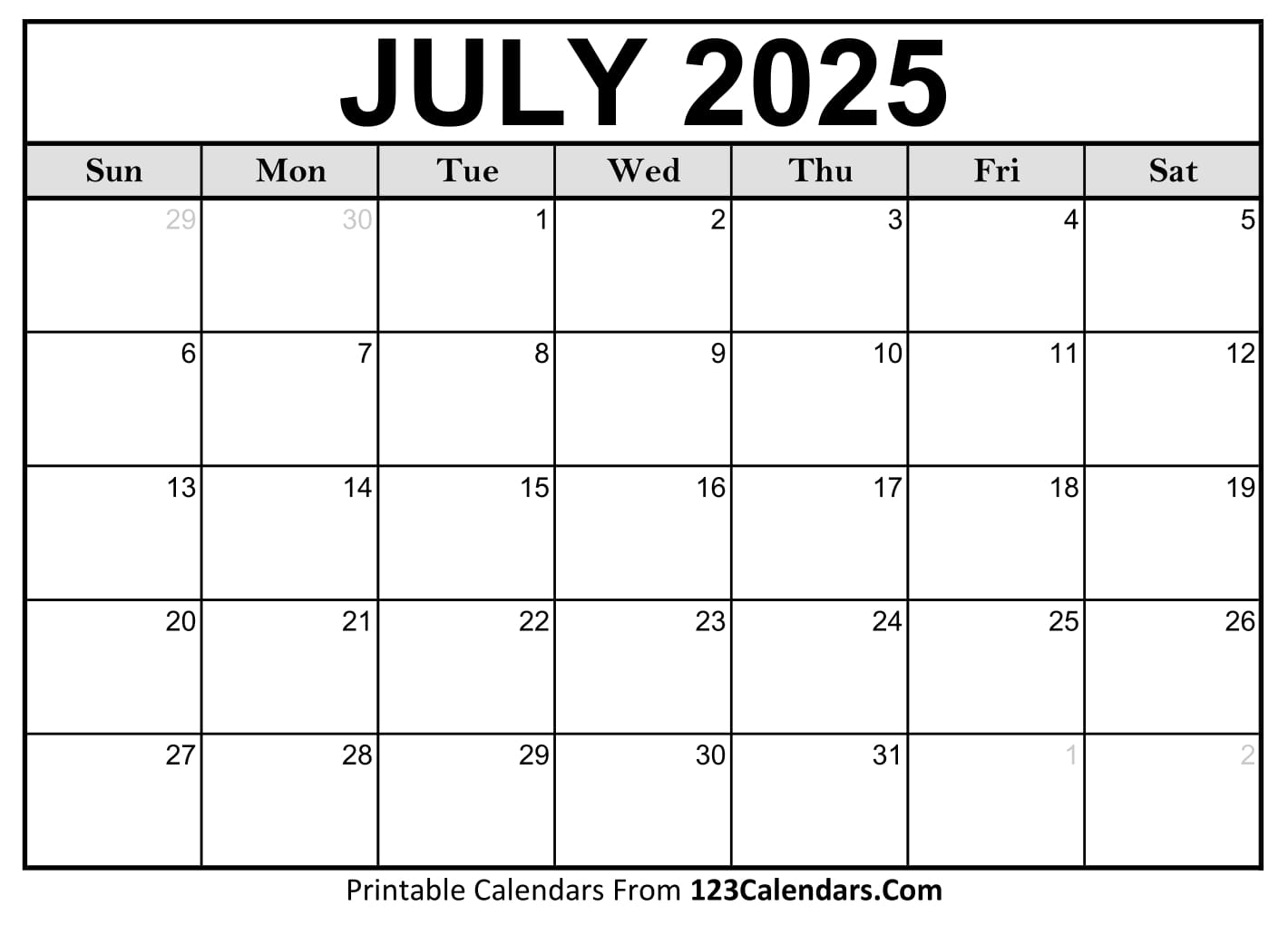 Printable July 2025 Calendar Templates Easy To Download U0026 Print