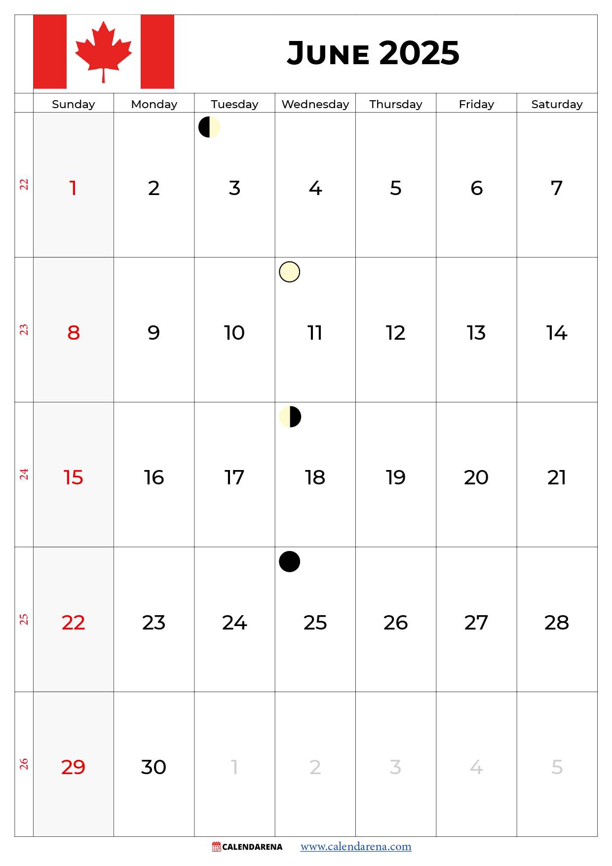June 2025 Calendar Canada