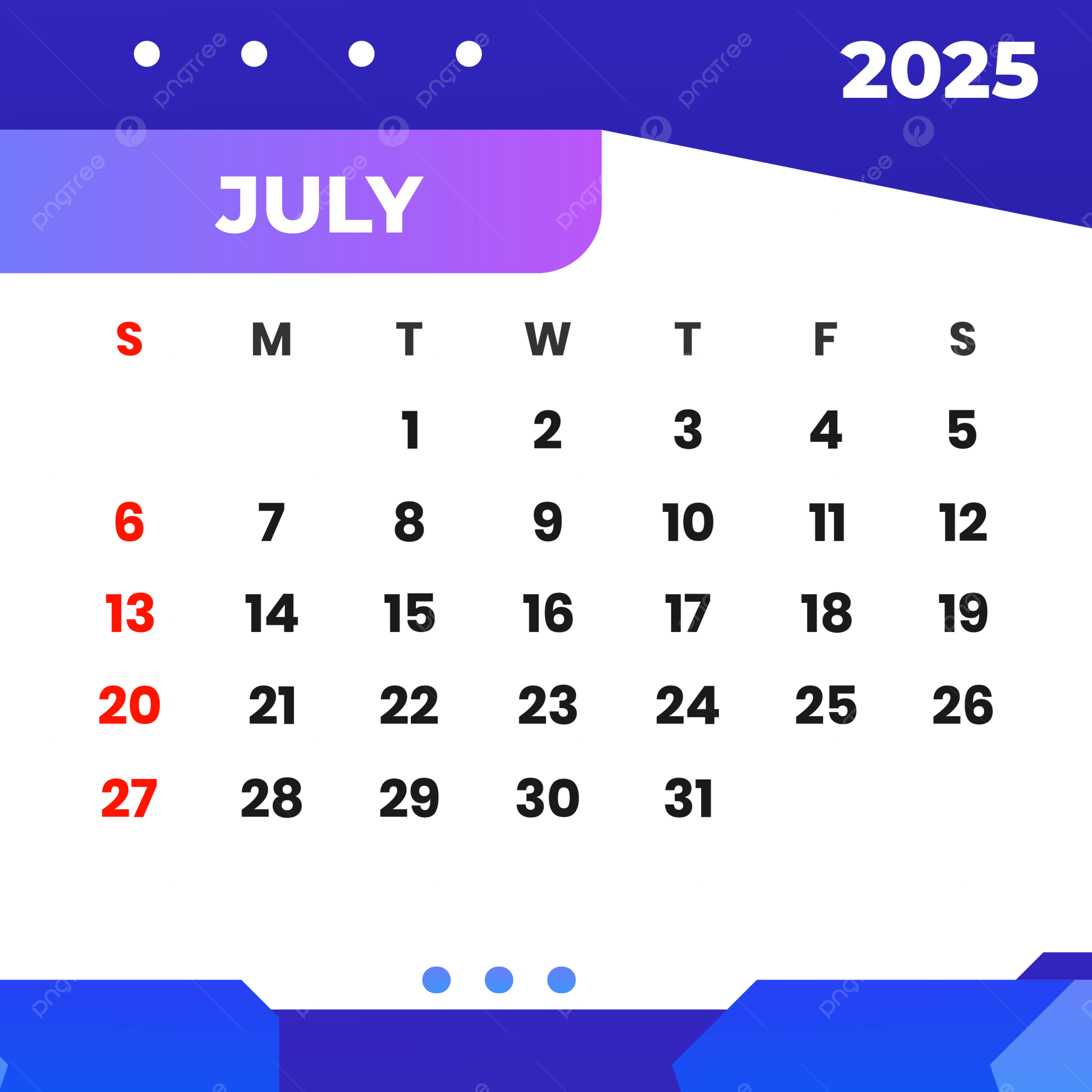 July 2025 Calendar Clip Art