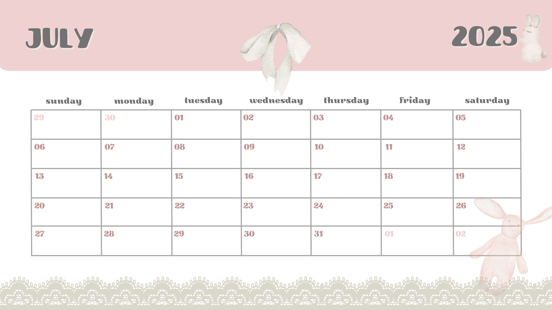 Don’t settle for a boring, generic calendar when you can have the July 2025 Calendar Coquette. Treat yourself to a stylish and functional accessory that will help you stay organized and on top of your game. Get yours today and start planning your best July yet!