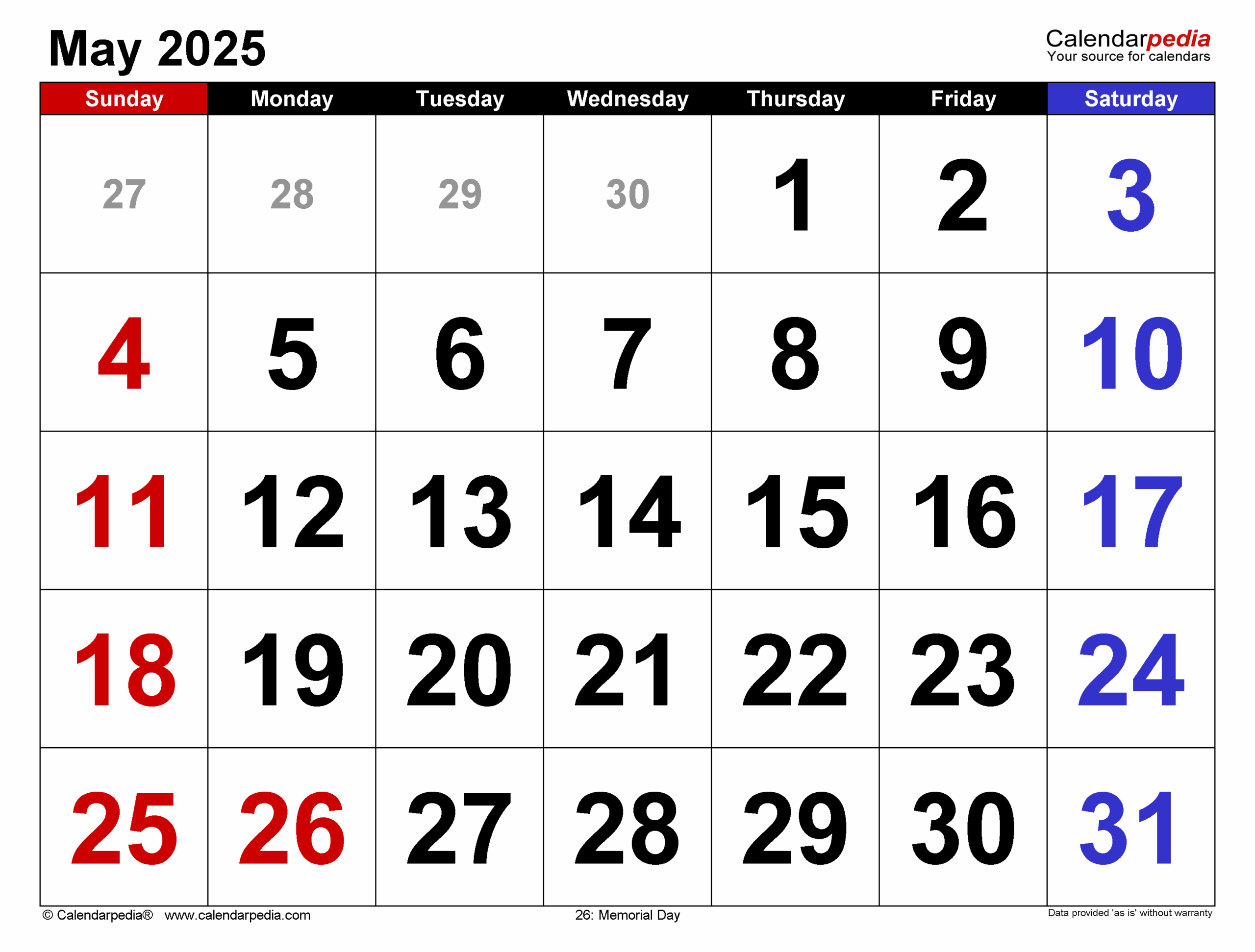 May 2025 Calendar Templates For PDF Excel And Word