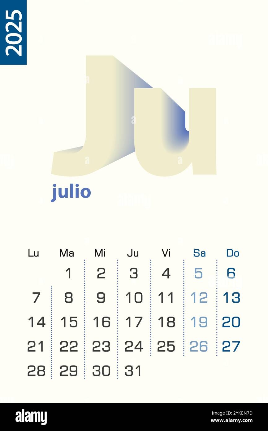 Minimalist Calendar Template For July 2025 Vector Calendar In Spanish Language Vector Calendar For 2025 Stock Vector Image U0026 Art Alamy