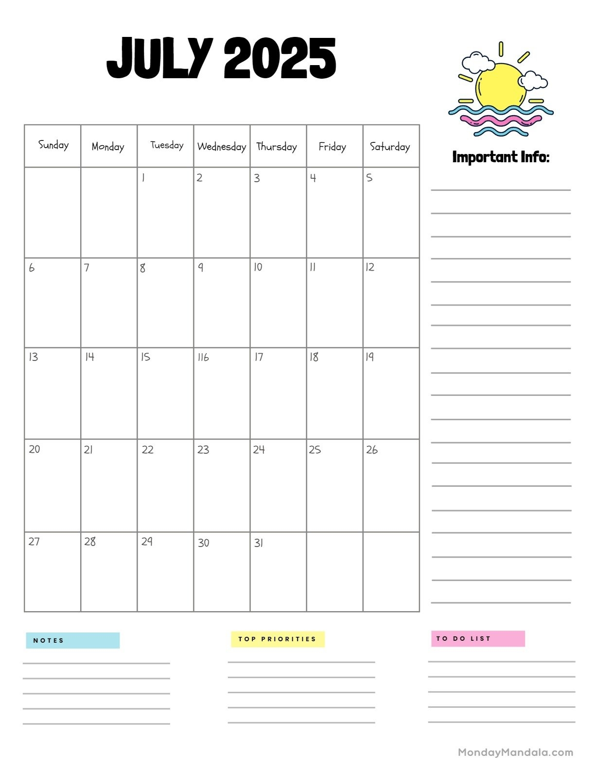 July is just around the corner, and what better way to stay organized than with a printable calendar that includes space for notes? Whether you’re planning your summer adventures or keeping track of important dates, a July 2025 Calendar Printable With Notes is a handy tool to have.