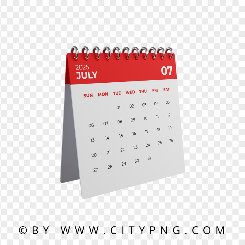 July 2025 Monthly 3D Calendar Citypng