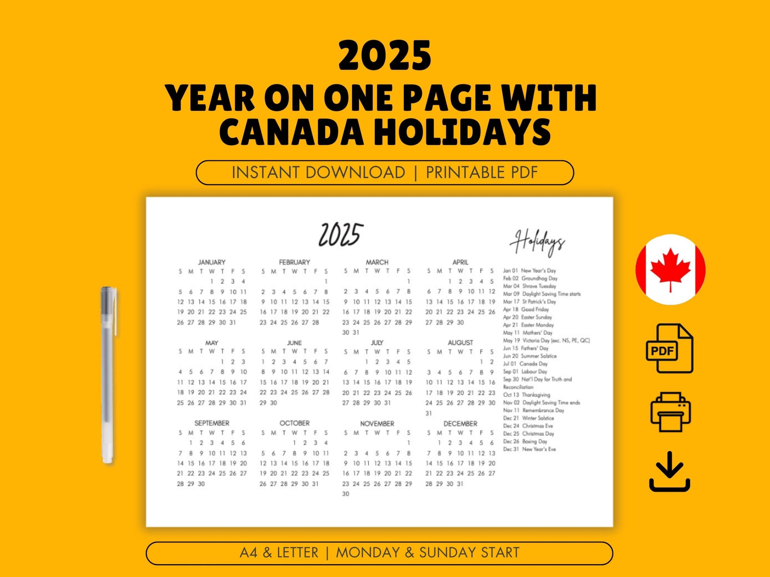 Free 2025 Canada Calendar With Holidays Template To Edit Online