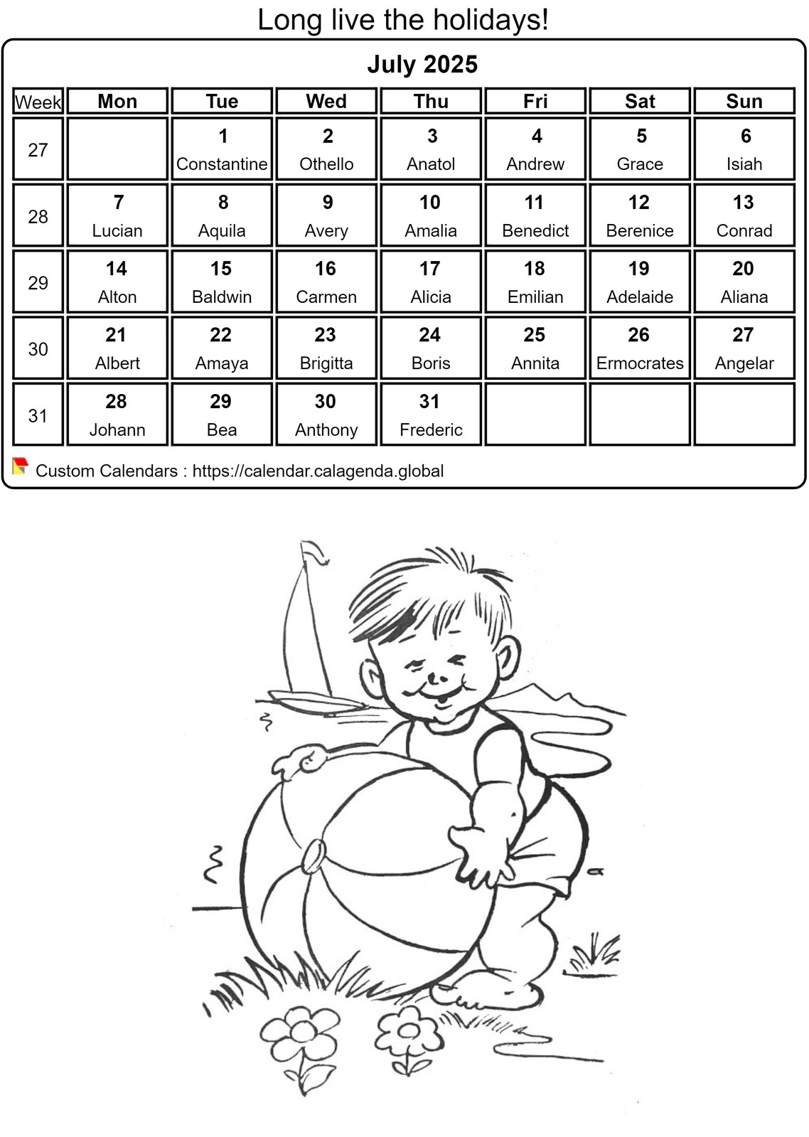 Calendar Coloring July 2025