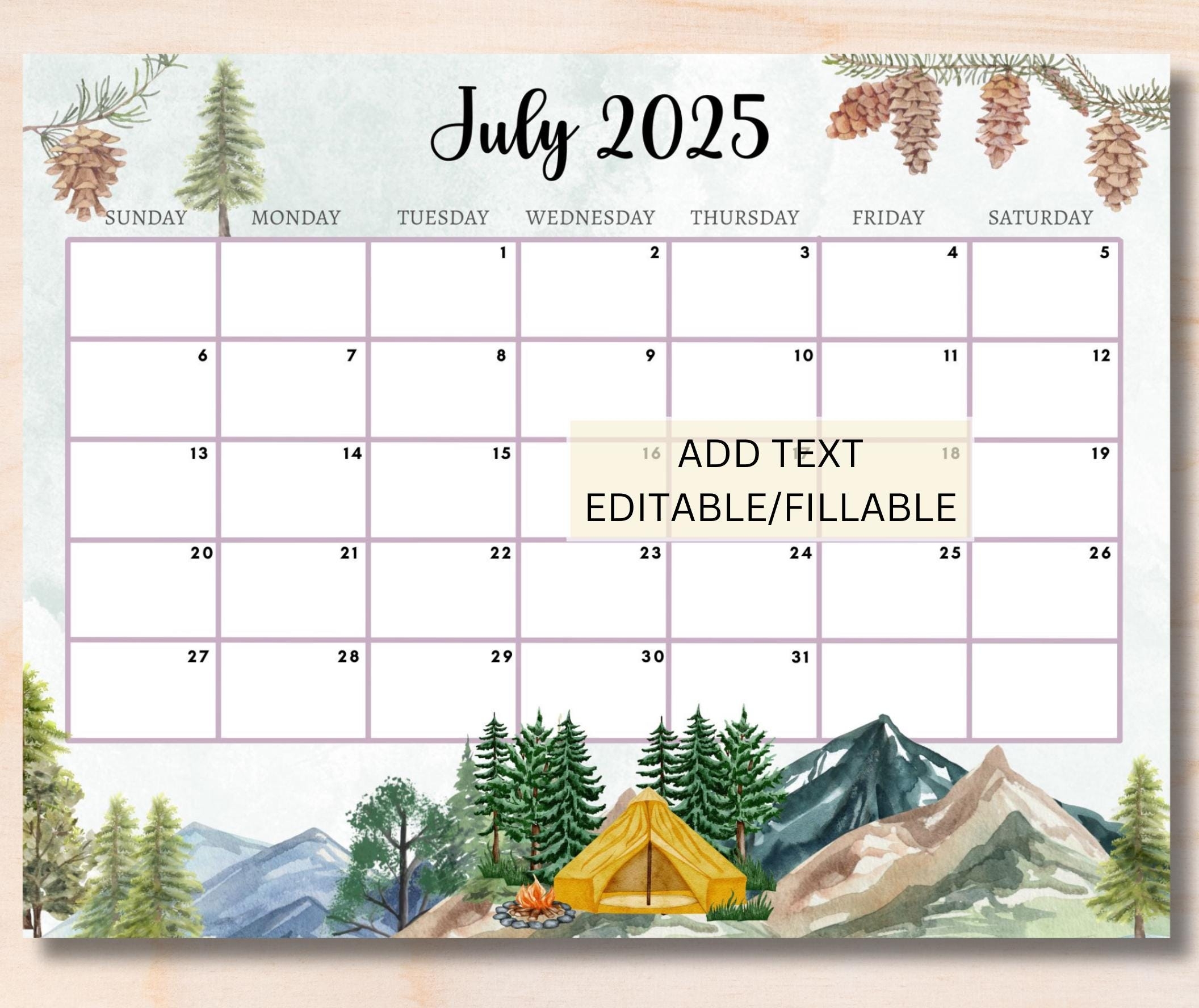 EDITABLE July 2025 Calendar Printable Fillable Monthly Planner