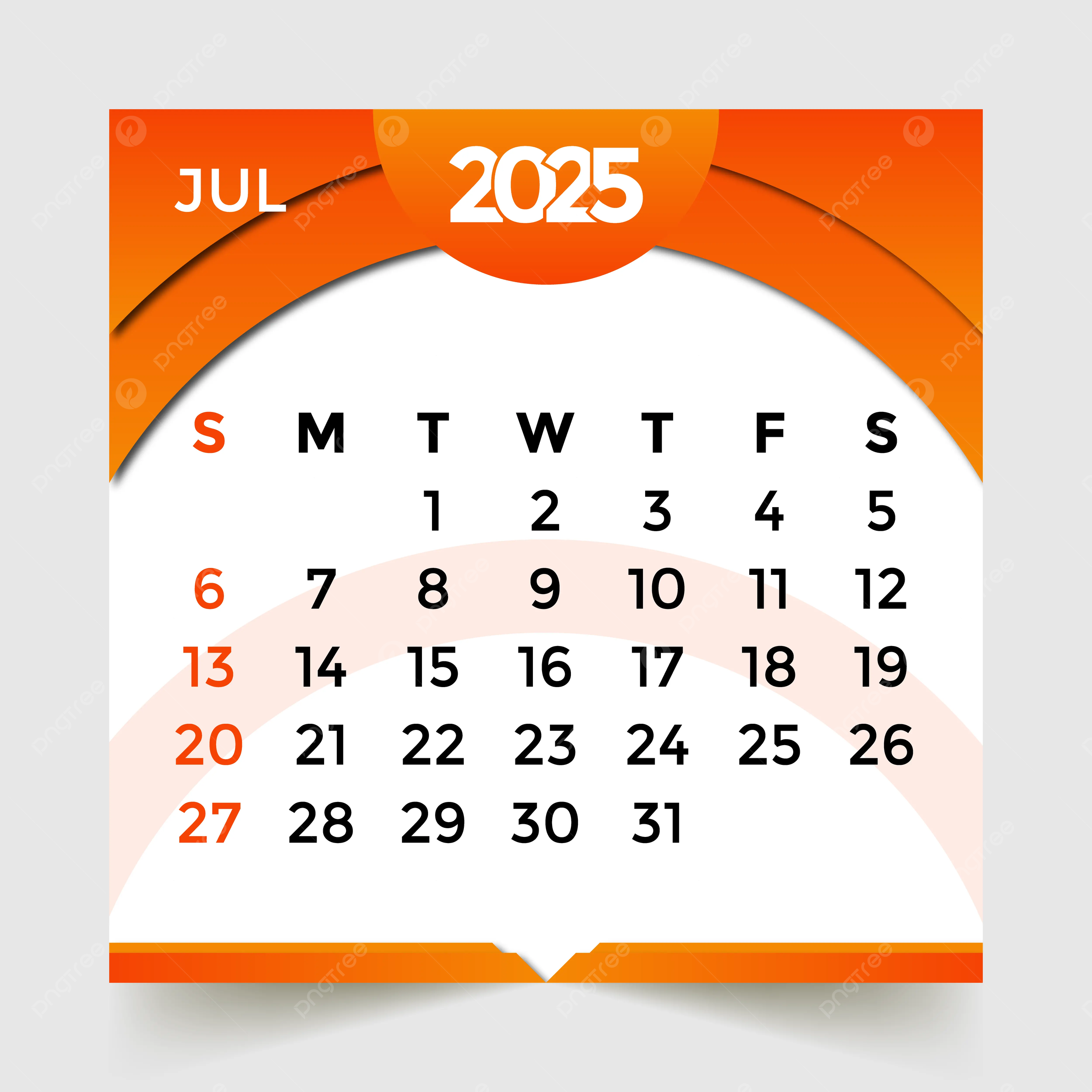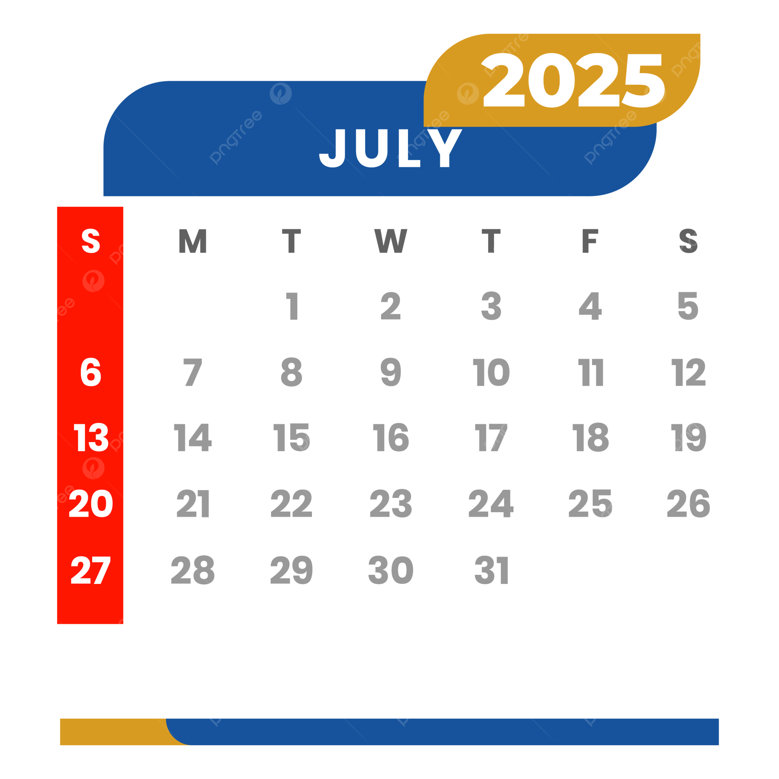 2025 Calendar Month Of July Vector Template Download On Pngtree
