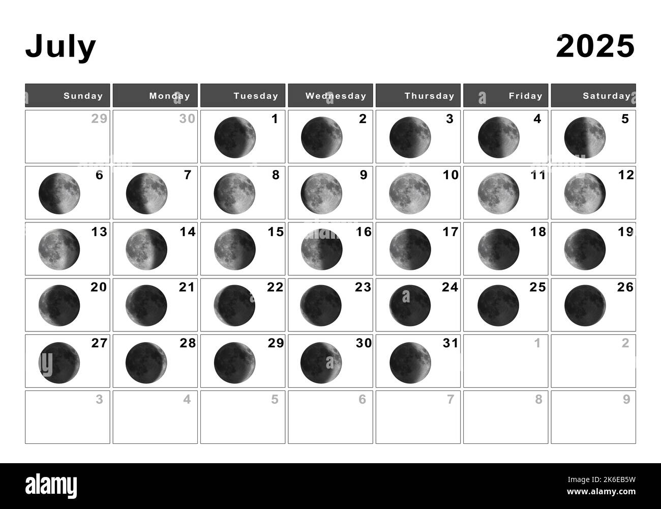 July 2025 Lunar Calendar Moon Cycles Moon Phases Stock Photo Alamy