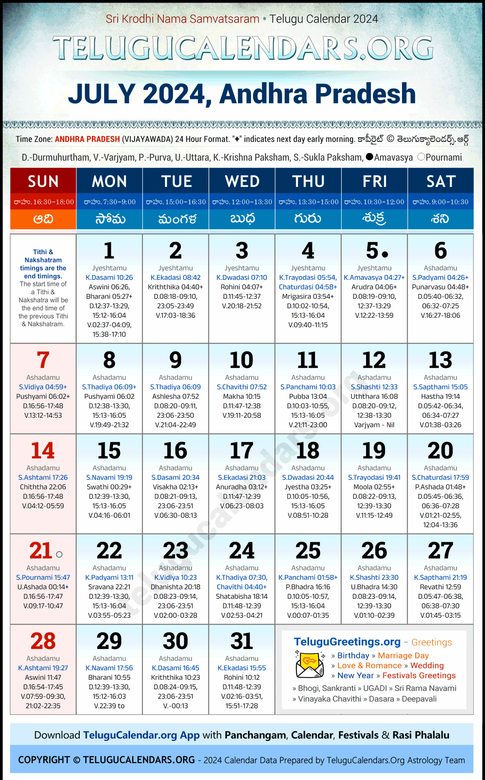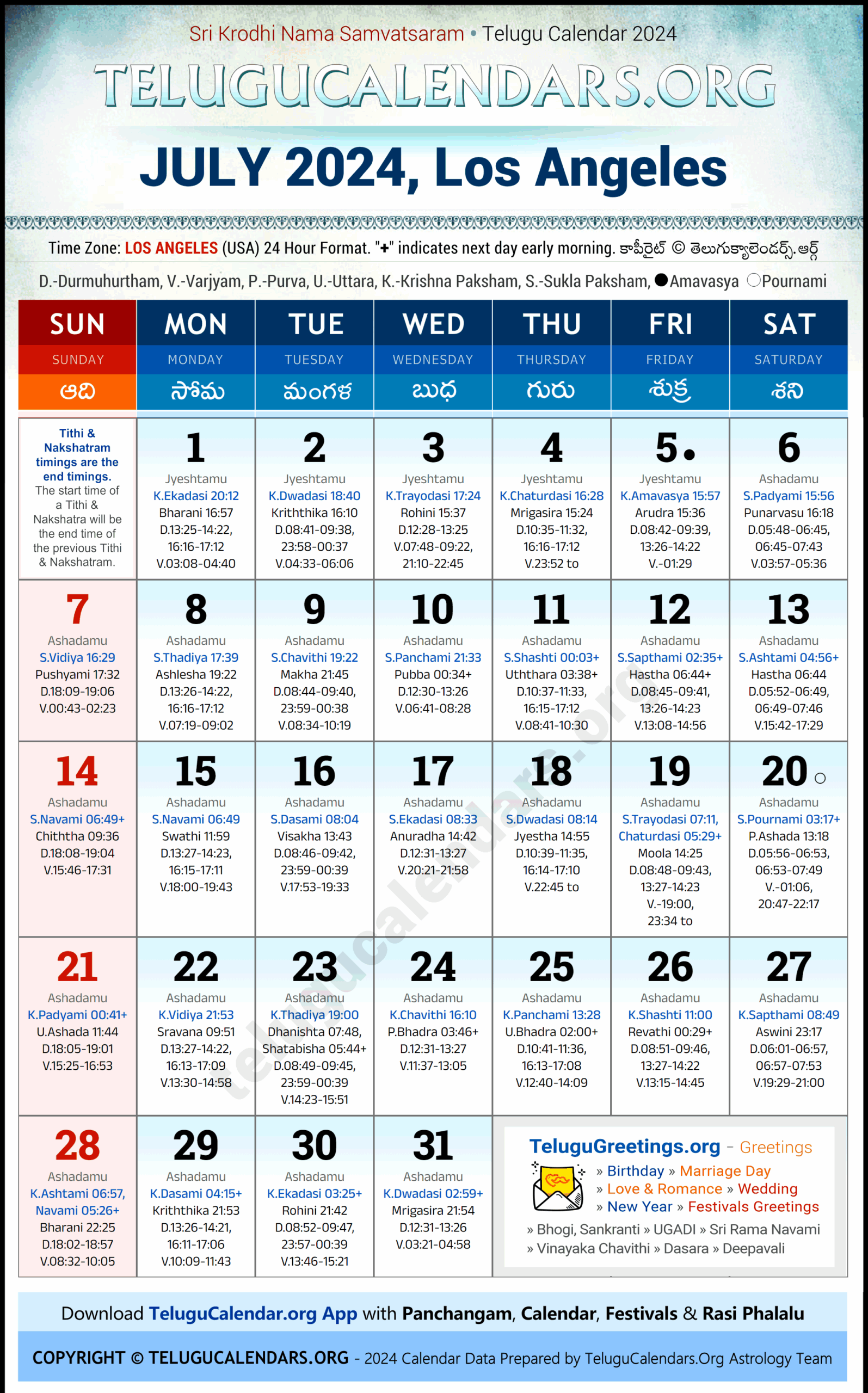 Los Angeles 2024 July Telugu Calendar Festivals U0026 Holidays In