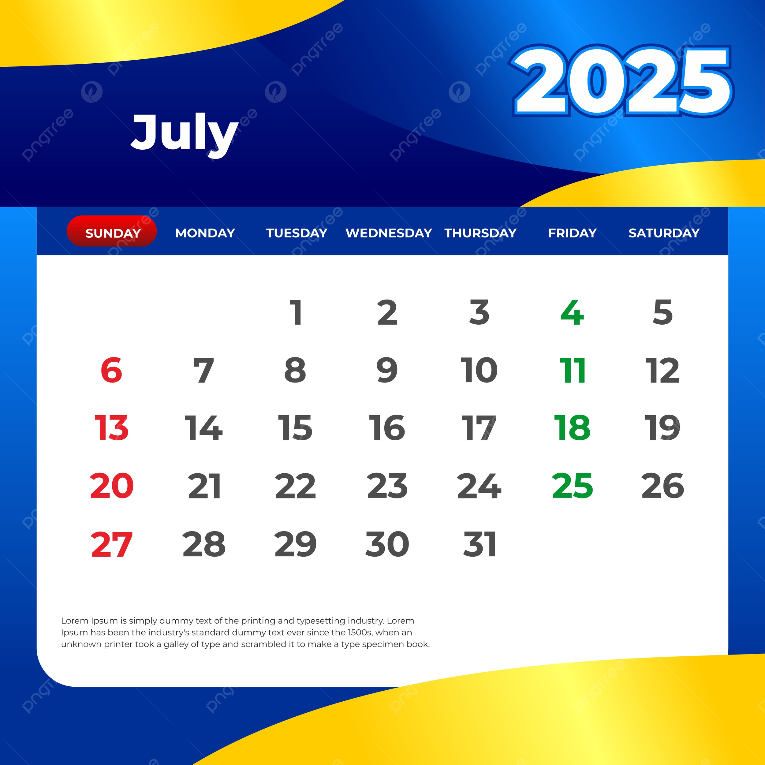 July 2025 Calendar Free Printable PDF XLS And PNG