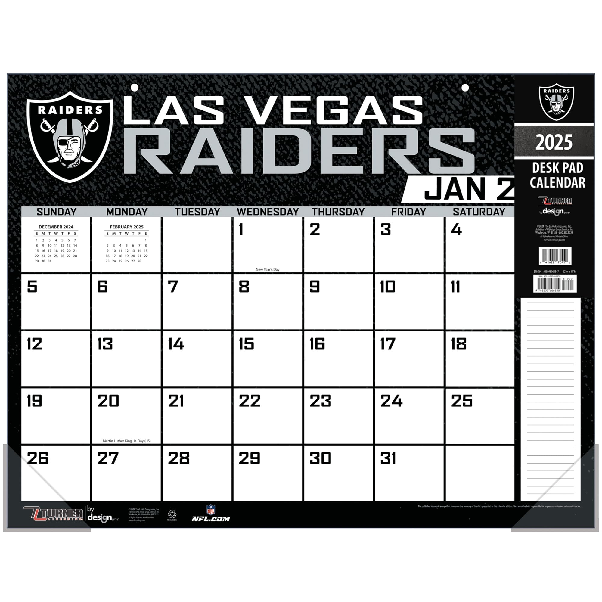 Amazon TURNER SPORTS Las Vegas Raiders 2025 22×17 Desk Calendar 25998061547 Office Products