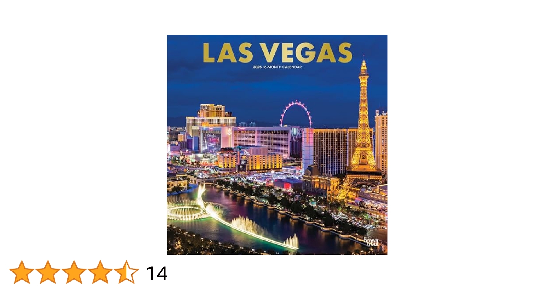 Las Vegas 2025 12 X 24 Inch Monthly Square Wall Calendar Foil Stamped Cover Plastic Free BrownTrout USA United States Of America Nevada