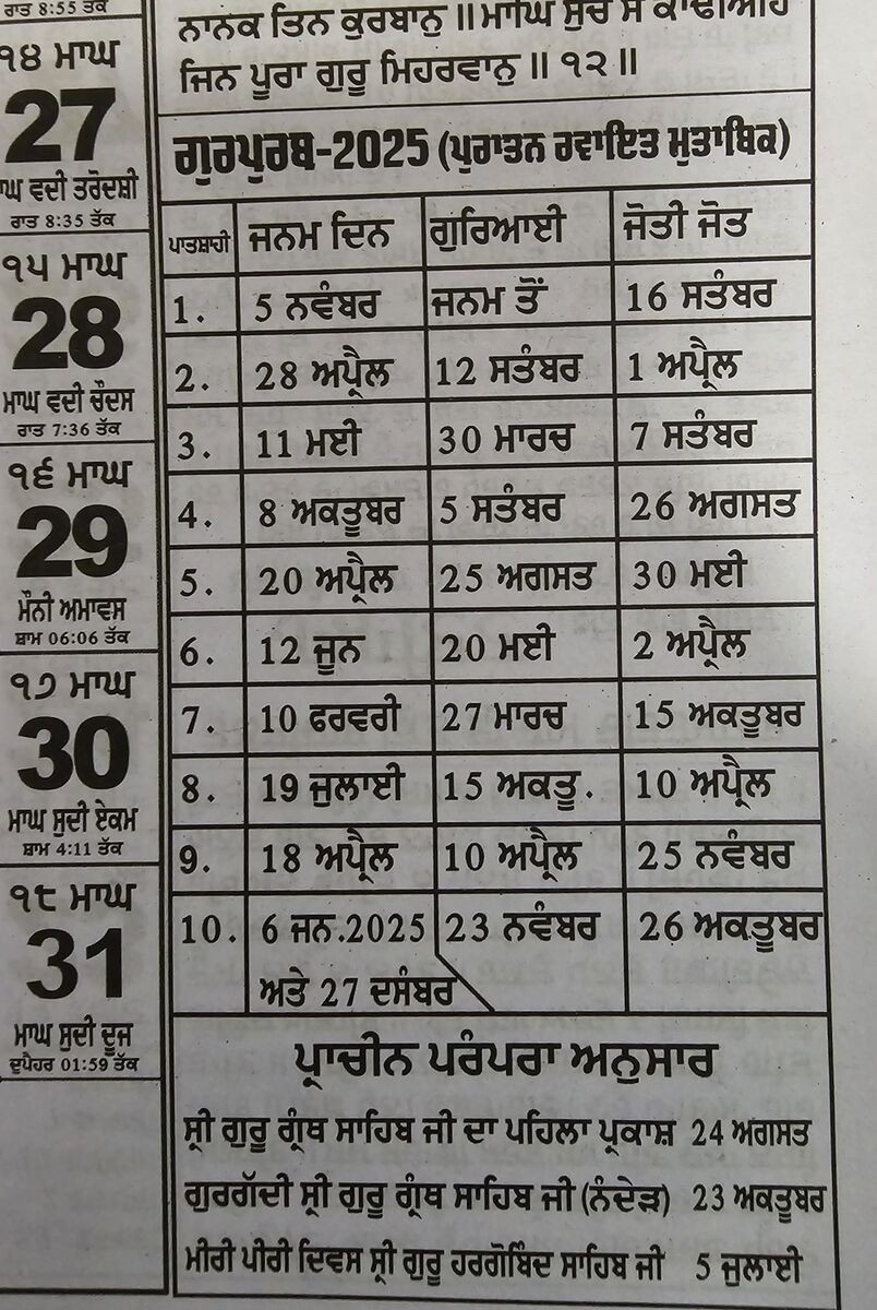 Sikh Calendar Khalsa Heera Jantari Nanakshahi 2025 Punjabi Hindu