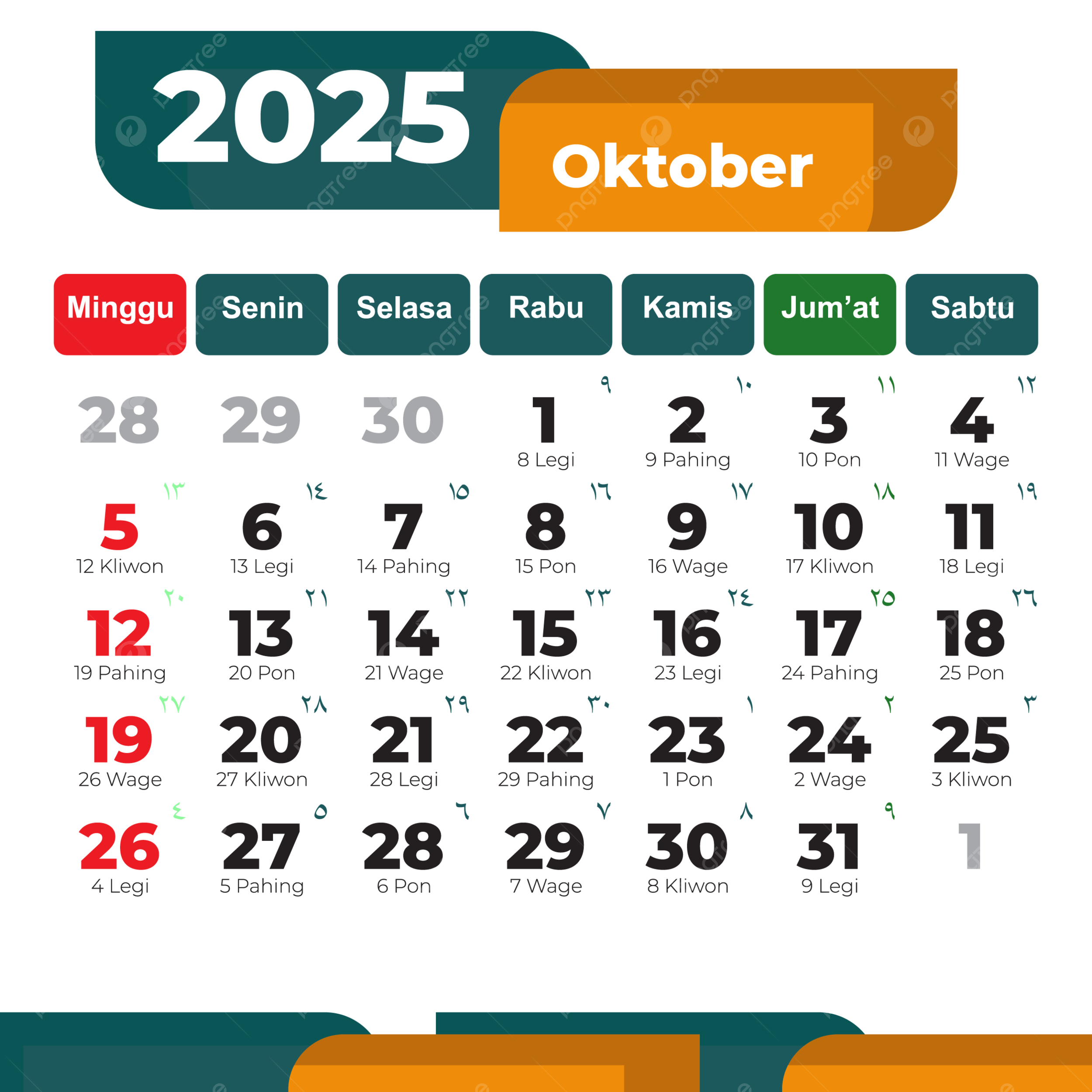 October 2025 Complete Indonesian Calendar In Green Vector 2025 Calendar Indonesian Calendar October PNG And Vector With Transparent Background For Free Download